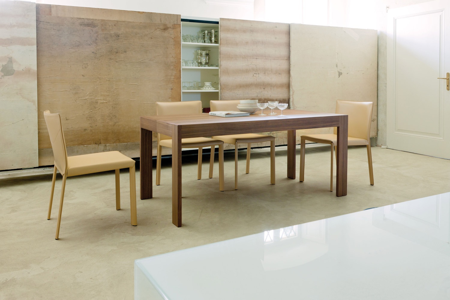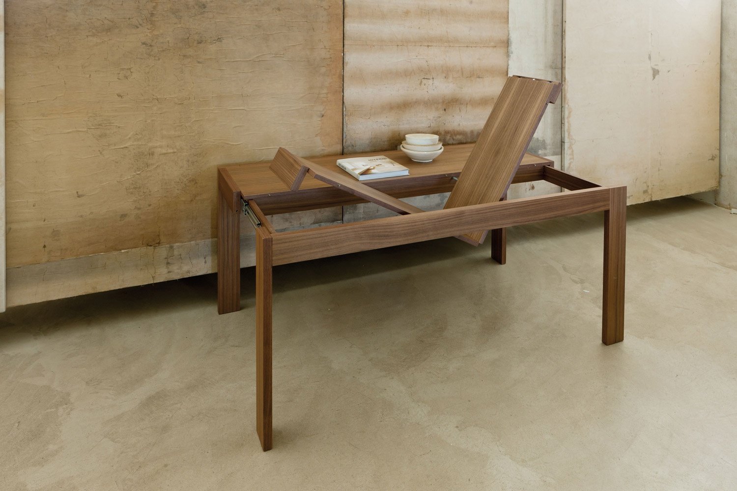 Table - console Pandora from the Italian manufacturer Porada. Model sliding a rectangular shape with a top and frame made of wood of walnut. Colours in stock. The modern design.
