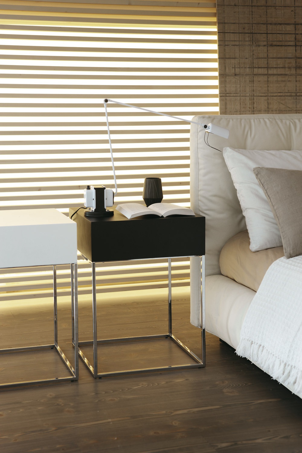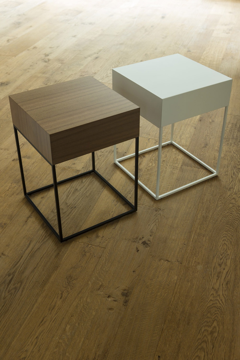 | Description: | Table with frame made of metal in black lacquer, and drawer 45°in black Matt lacquer finish with closed pores. |