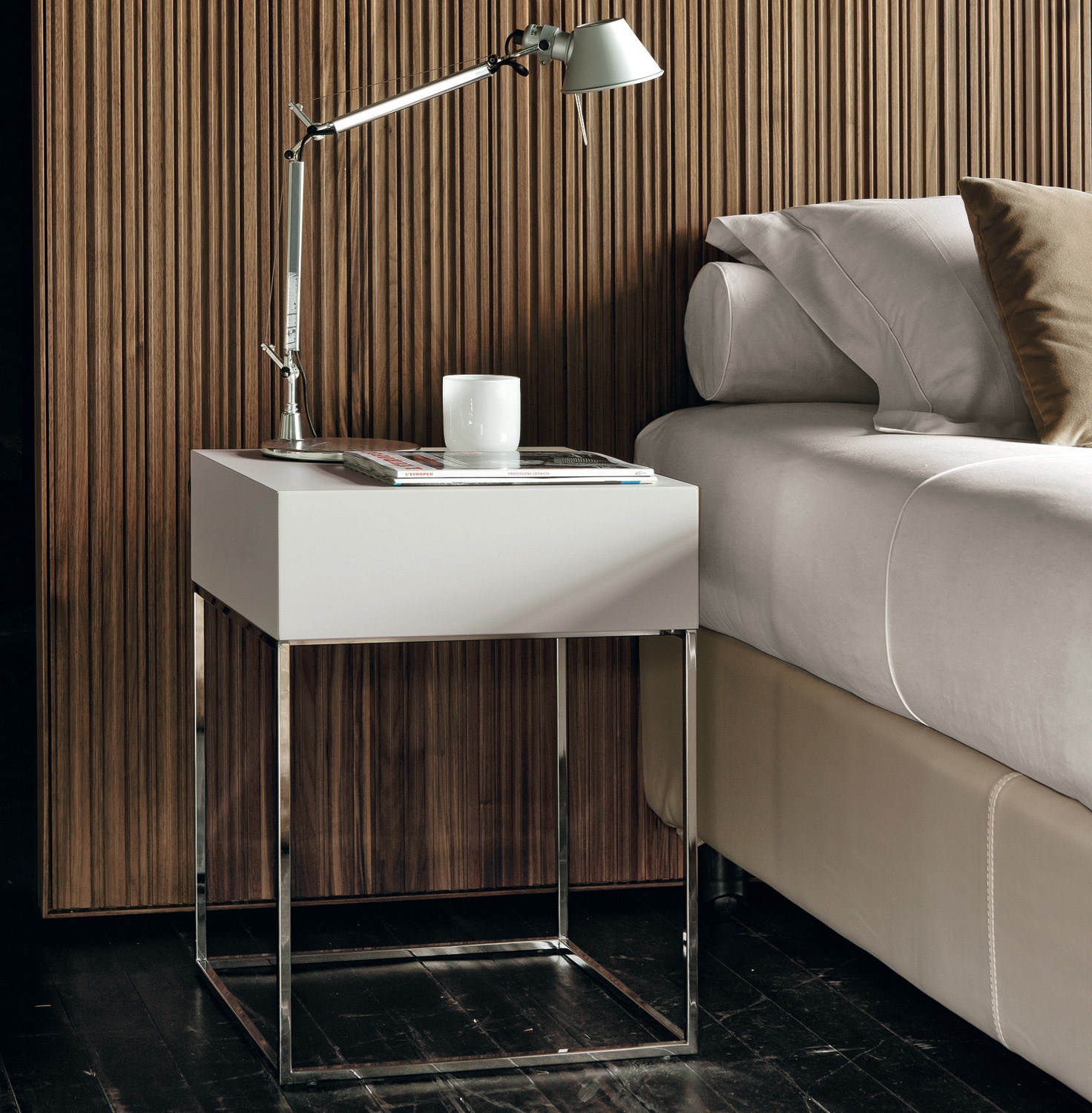 | Description: | Table with frame of chromed steel, and drawer 45° of solid walnut. |