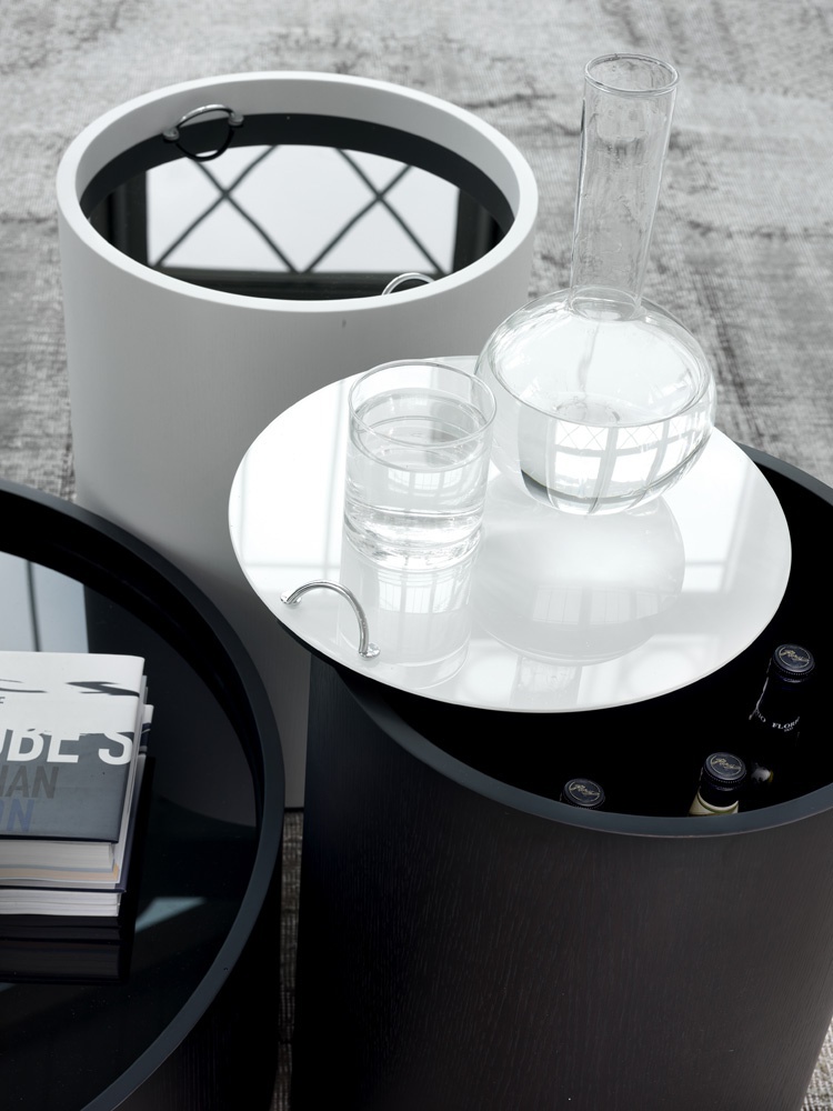 Bisbubble coffee table by Italian manufacturer Porada. A model with wheels. The body is made of bent plywood. Given the opportunity to use for storage. - With a lid - tray made of glass. Well suited for most styles. Variety of colors - in stock.