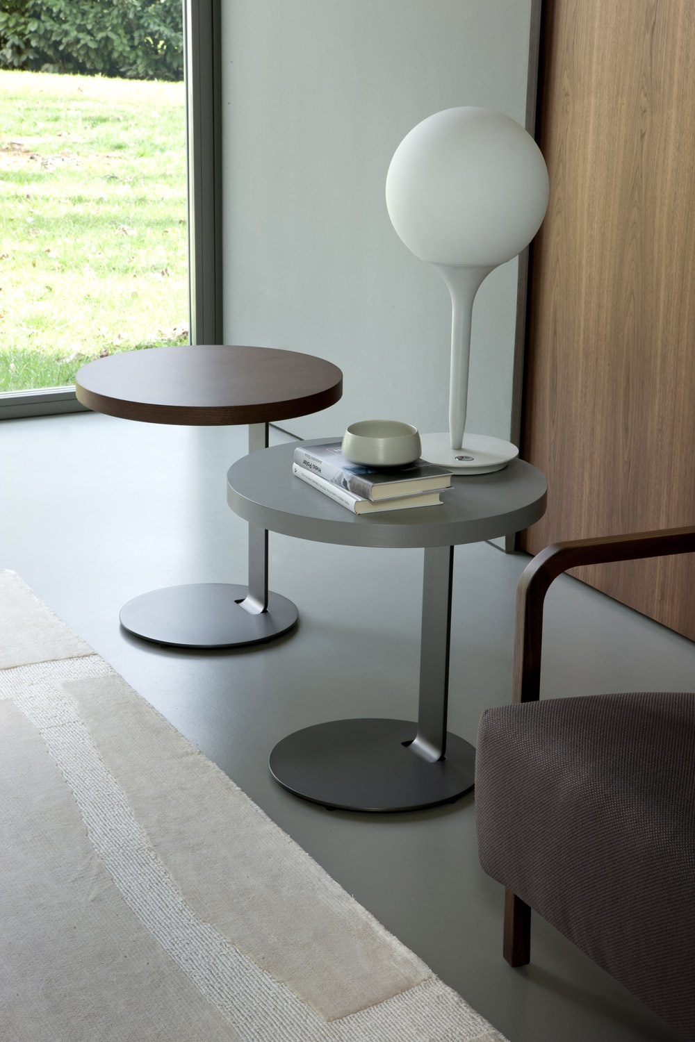 base: chrome-plated steel top: ash finish: wenge |