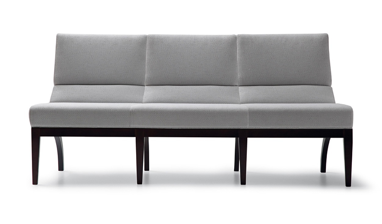 Antony sofa from Italian manufacturer Opera Contemporary. The original model without armrests. The frame and legs made from solid stained beech. The varnish finish offered. Textile or leather upholstery to choose from a range of the factory.