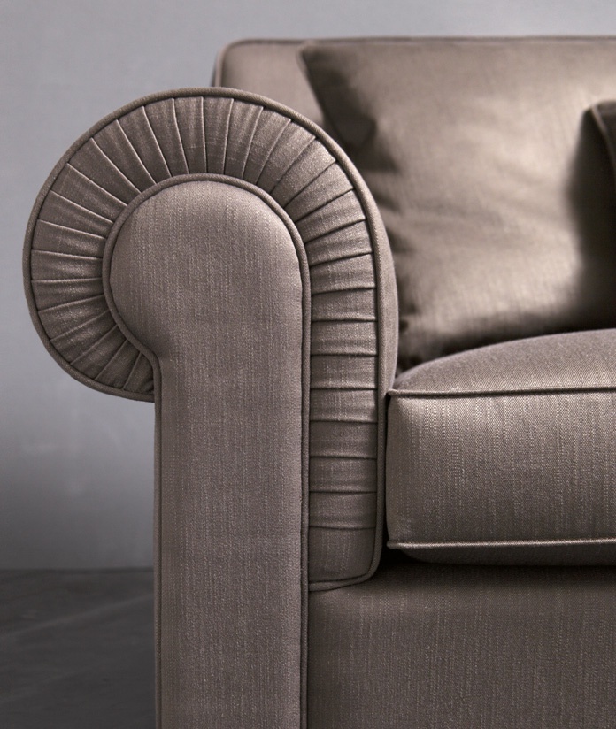 Chair with rounded armrests and square seatback Ruggero from the Italian producer of Contemporary Opera. The frame is made of wood. The legs of the sofa low square shape made of wood. Upholstery textiles or leather according to the manufacturer's catalogue. The model complements a variety of decorative pillows.