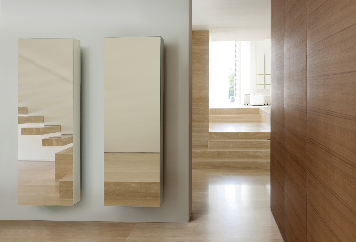 The mirror - hanger Camper from the Italian manufacturer Porada. Model in frame of solid wood of walnut. Wall mirror with a revolving door and hangers. This model is perfect for hallway in modern style.