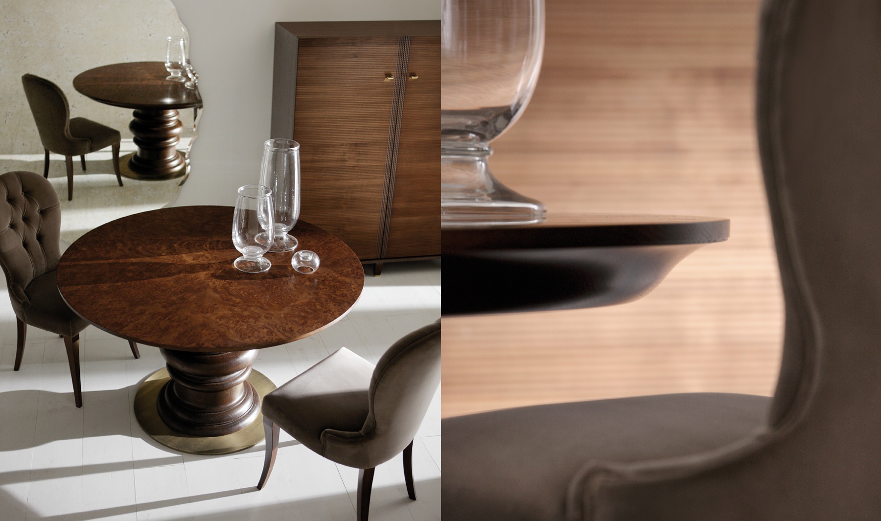 Chair Georges from the Italian producer of Contemporary Opera. The model without armrests, designed for the dining room, living room or office. Chair in art Deco style, the frame is made of wood. Upholstery textiles or leather based on manufacturer's catalogue. The chair is adorned with decorative buttons.
