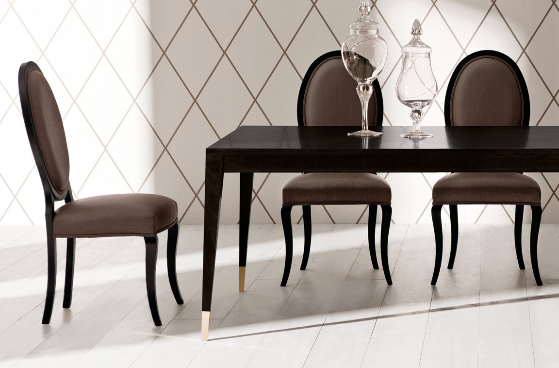 The Alexander chair from the Italian manufacturer of Contemporary Opera. The model without armrests. The design is executed in art Deco style. A chair on a frame of wood. Upholstered in textile or leather based on manufacturer's catalogue.