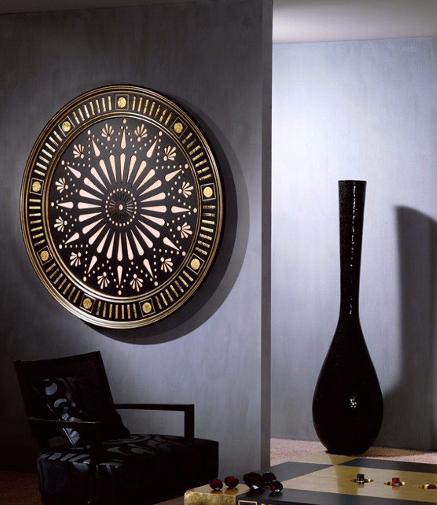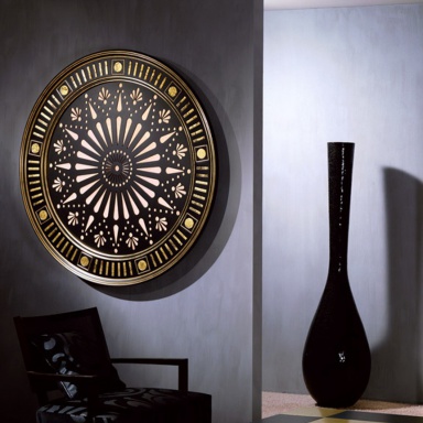 Picture of Shining Sun Vismara Italian manufacturer. Presents round pattern in gold tones with black accents. Perfectly complement the interior in a modern style.