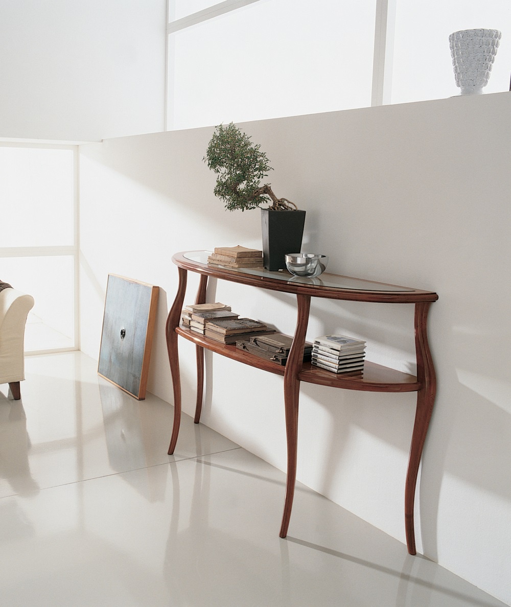 Console Z1196 from the Italian manufacturer Annibale Colombo. Model on high legs curly shape. Material - solid wood cherry. Finish option to be selected from a catalog company. Different practicality and elegance of design.