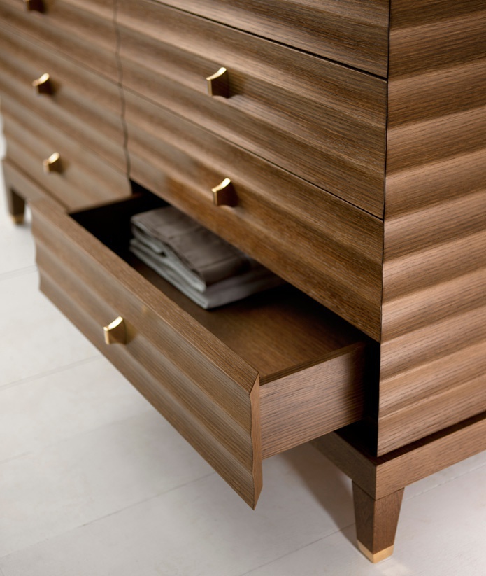 The drawers Elettra from Italian manufacturer Opera Contemporary. The body is made of solid wood. The corrugated surface processed with lacquer. The model is comfortable and functional with eight drawers is designed for living room or bedroom. Fittings - metal. The color of the light.