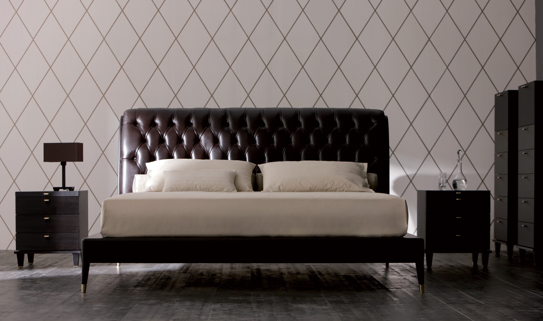 Table Dimitri from Italian manufacturer Opera Contemporary. The body is made of solid wood, surface is embossed and varnished. Model on legs with three drawers. Fittings - metal. Color is black. A chic choice for the bedroom in a modern or art Deco style.