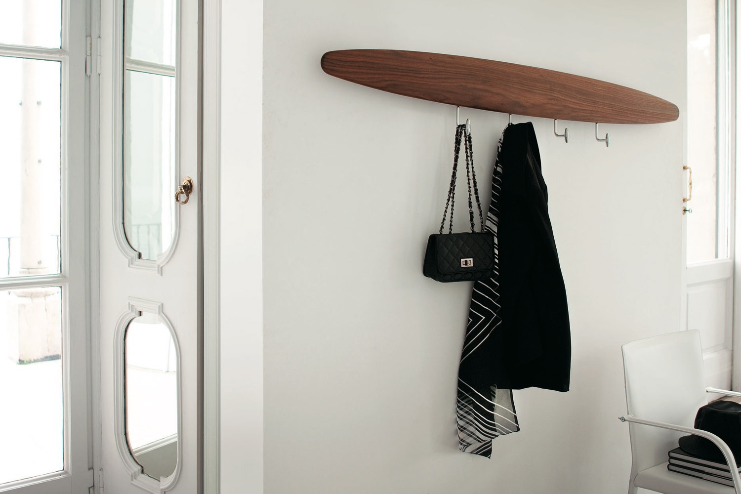Willk coat hanger made of wood with steel hooks by Italian manufacturer Porada. Model of solid walnut with built-in hooks. Can hang vertically and horizontally. The modern design.