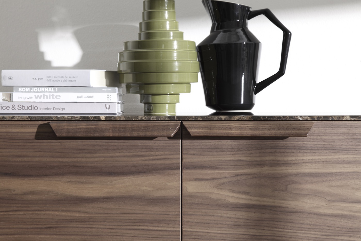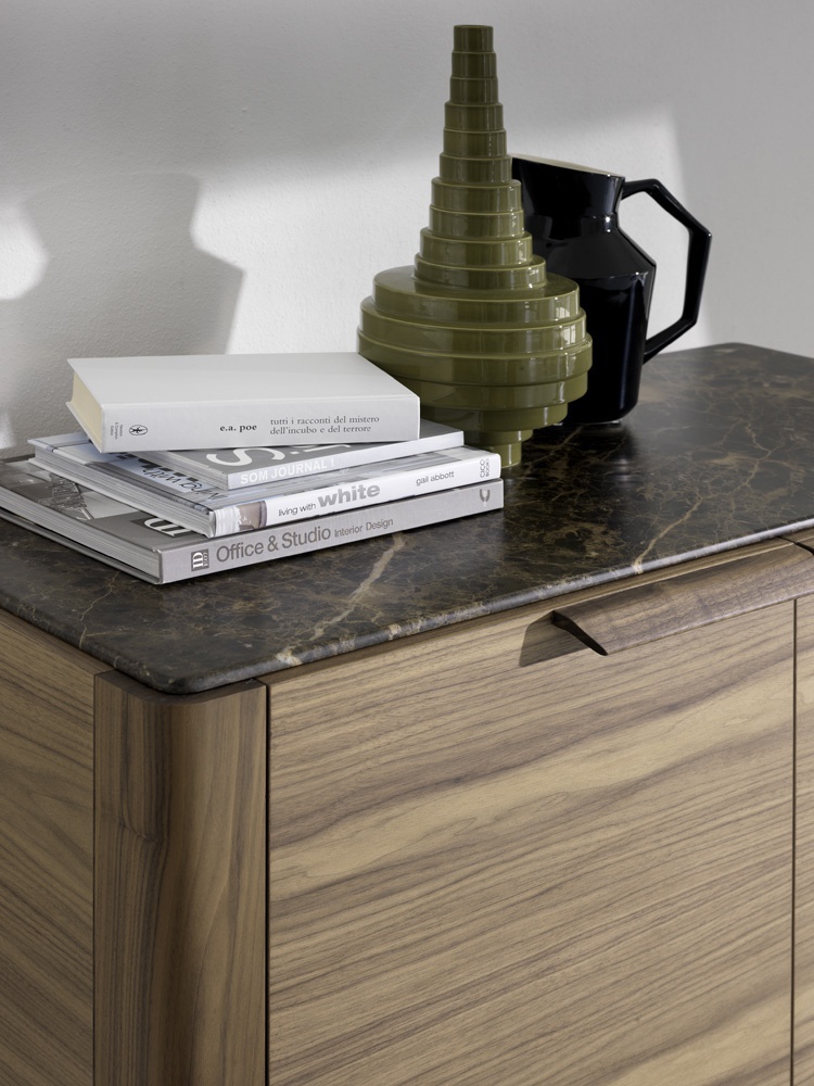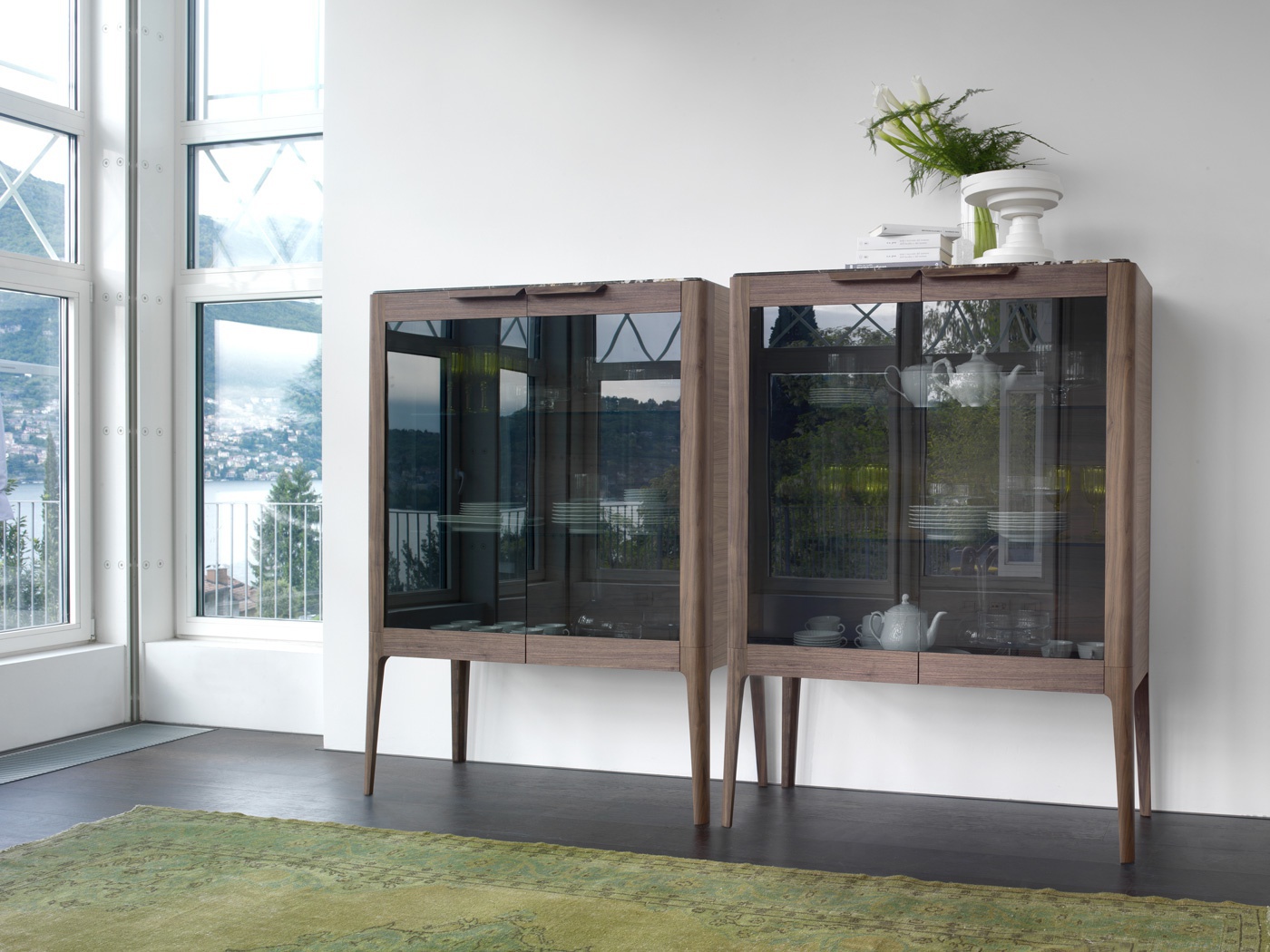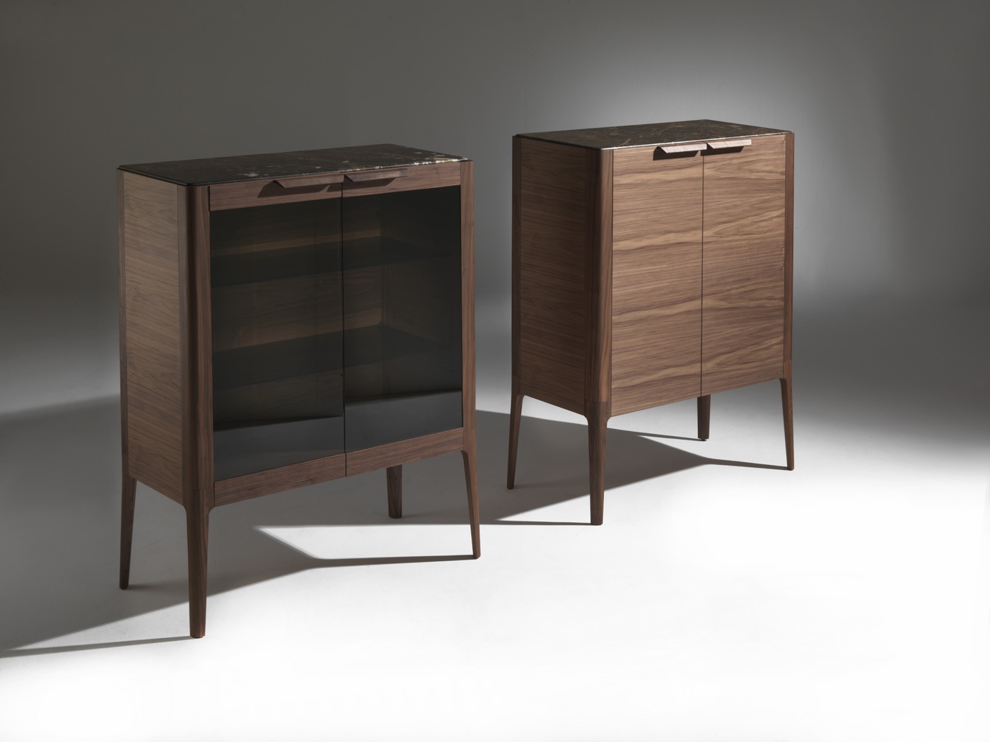 Atlante sideboard made of solid wood from Italian manufacturer Porado. Model with wooden or glazed doors. Material - solid walnut stained wenge or natural. And painting, do not cover the wood texture. Worktop - marble or wood. Color in stock. The perfect choice for the modern interior.
