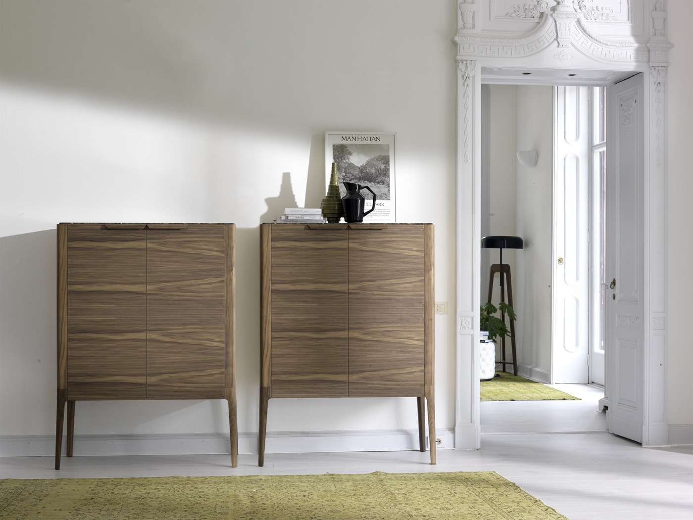 | Description: | Sideboard in solid walnut with two wooden doors and one wooden table top, internal glass shelves. |