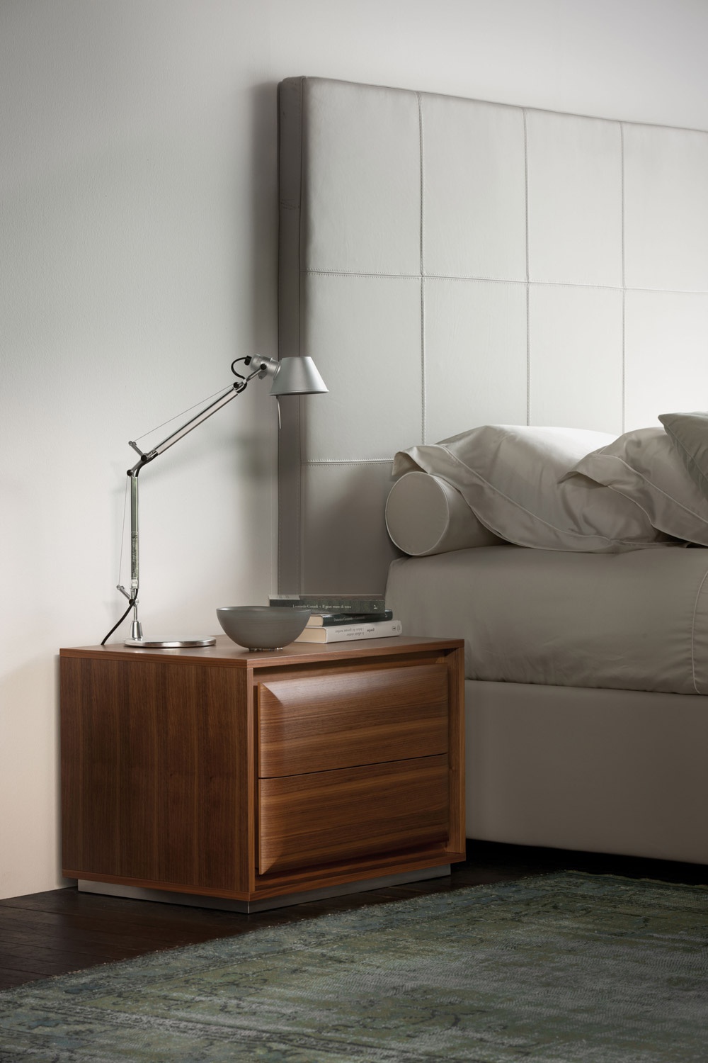 The Hamilton bedside table made of solid wood by Italian manufacturer Porada. Model of solid walnut with drawers on a metal base. Available in the colour of natural walnut. The modern design.