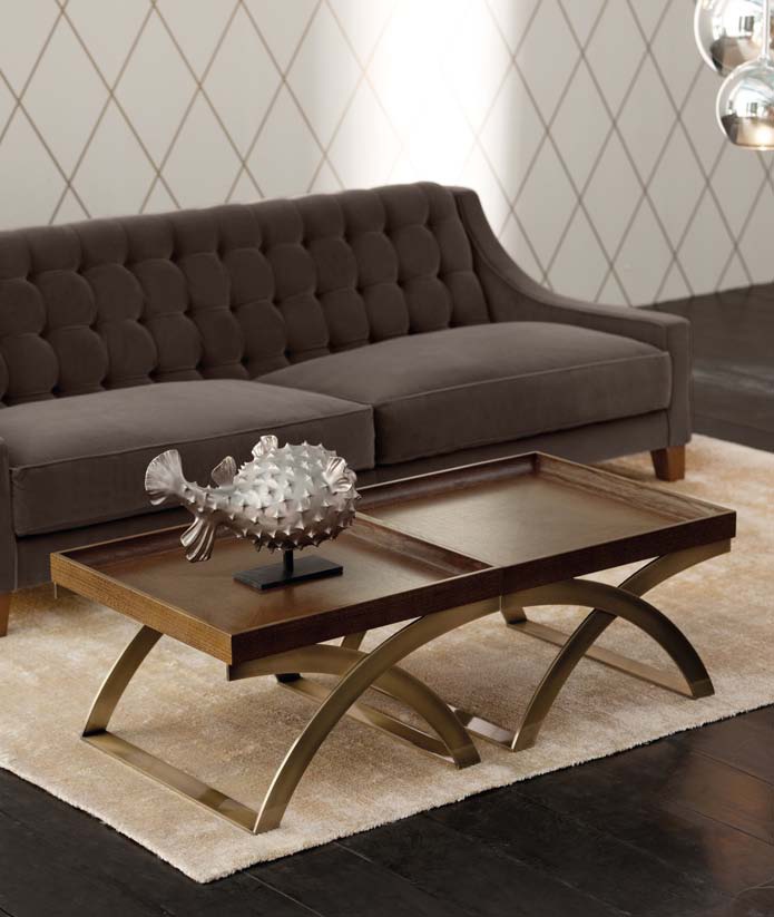 Table Lear from the Italian producer of Contemporary Opera. Coffee table square shape. Model in art Deco style with a frame made of brass. Metal base creates geometric patterns. The table top is made of oak.