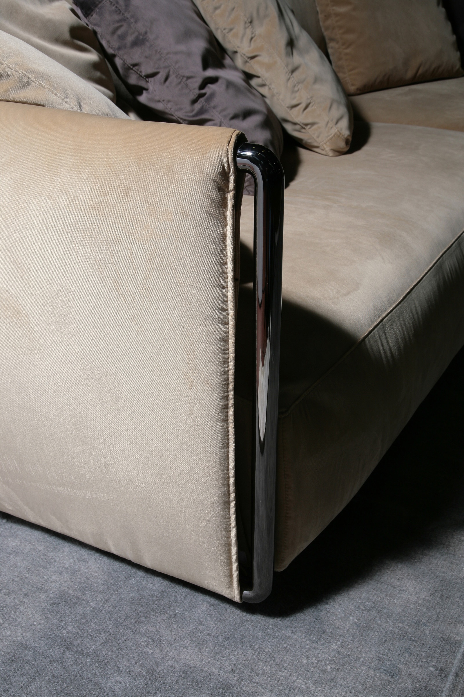 The Edmond sofa from Italian manufacturer Flexform. The frame is made of wood and metal. Upholstery removable covers in fabric or leather, the seat upholstery is not deformable polyurethane foam, back cushions are made in the fluff. Decorate sofa decorative feather pillows. The model is designed for living room in modern style. Color range: by catalogue of the manufacturer.