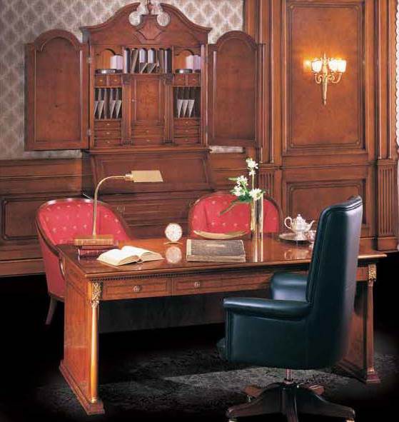 Desk from the Italian manufacturer Ezio Bellotti. Material - solid wood, finishing lacquer. The model for the office in classic style. Fittings - metal. Colours in stock.
