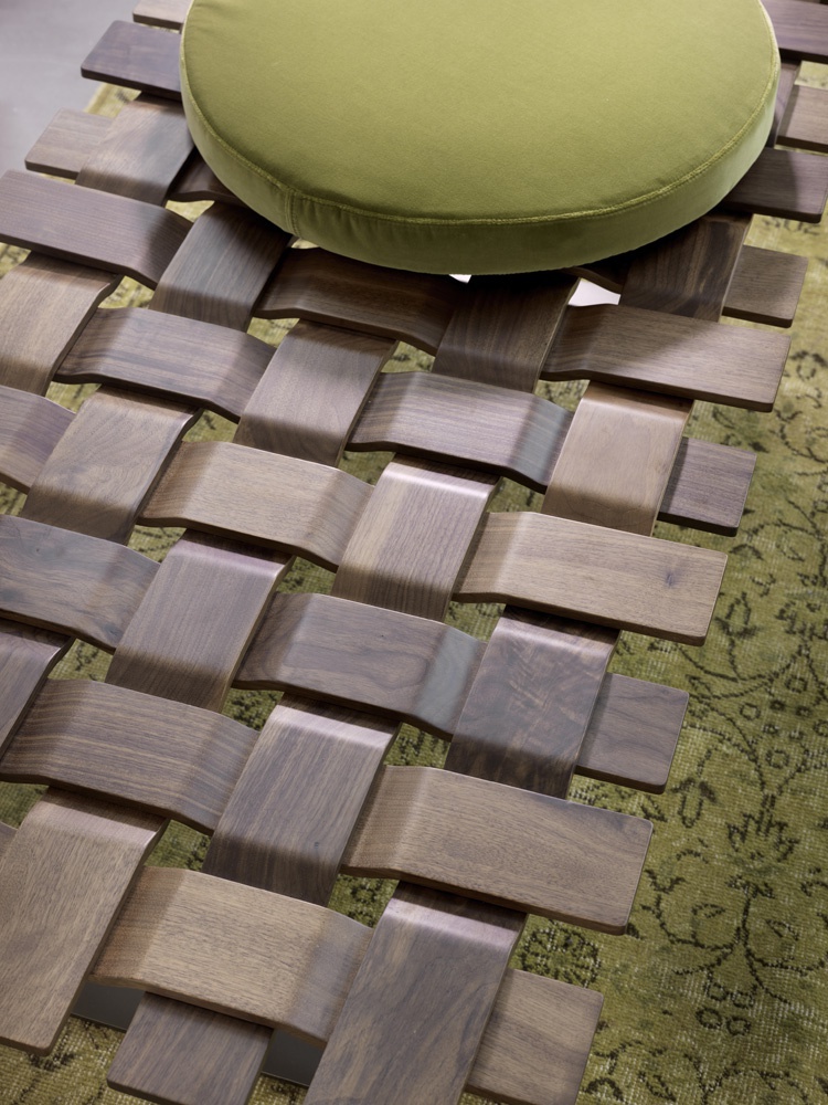 Bench Belt made of walnut wood by Italian manufacturer Porada. The model is made of interlacing strips of walnut. Karkas metal. The model is multi-functional. Color in stock.