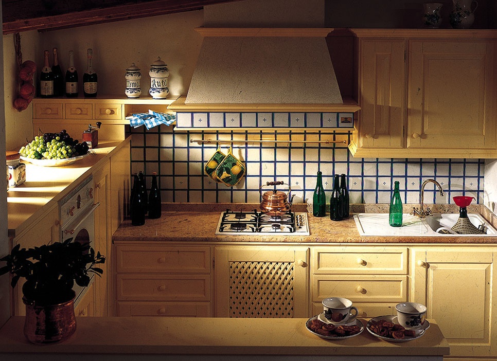 Kitchen collection Cadore Саnova - quality painting in antique yellow color, gently shaded in warm tones, introduces a feeling that the room was full of light. Color also playfully highlights finish grilles, glass and granite. Appliances disappear behind the elegant doors. It is pleasant details which distinguish the kitchen Cadore from the usual dishes. Collection of kitchens Canova is ready to offer a wide range of specialized cabinets: washing machine, refrigerator, grill and microwave oven. Provide the sections with rotating baskets and roomy drawers, as well as elements for holding cans and bottles.