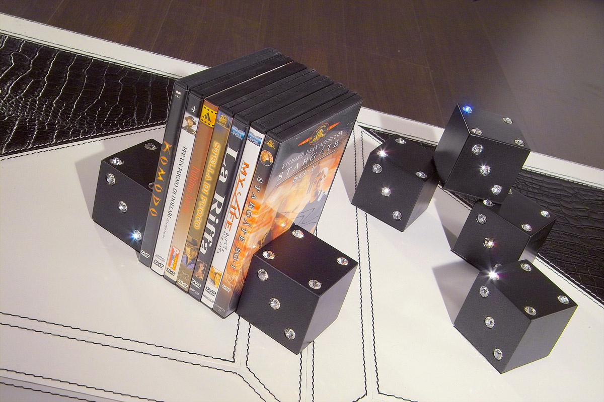 Decorative cubes with rhinestones IL DADO Italian manufacturer Vismara. The cubes are perfectly combined in compositions of several figures. Color in the black version in combination with light rhinestones. Design solution to complement modern interiors.