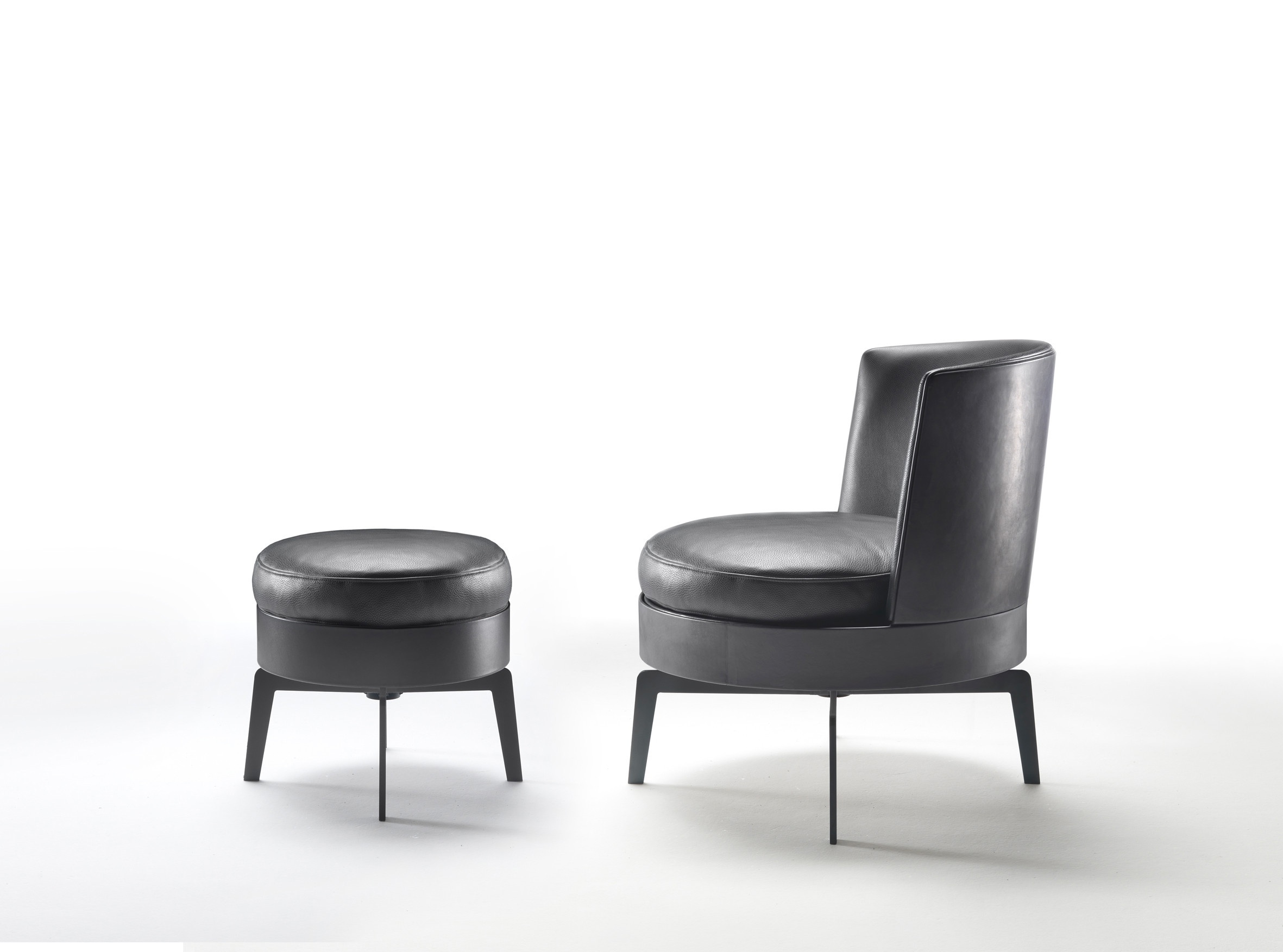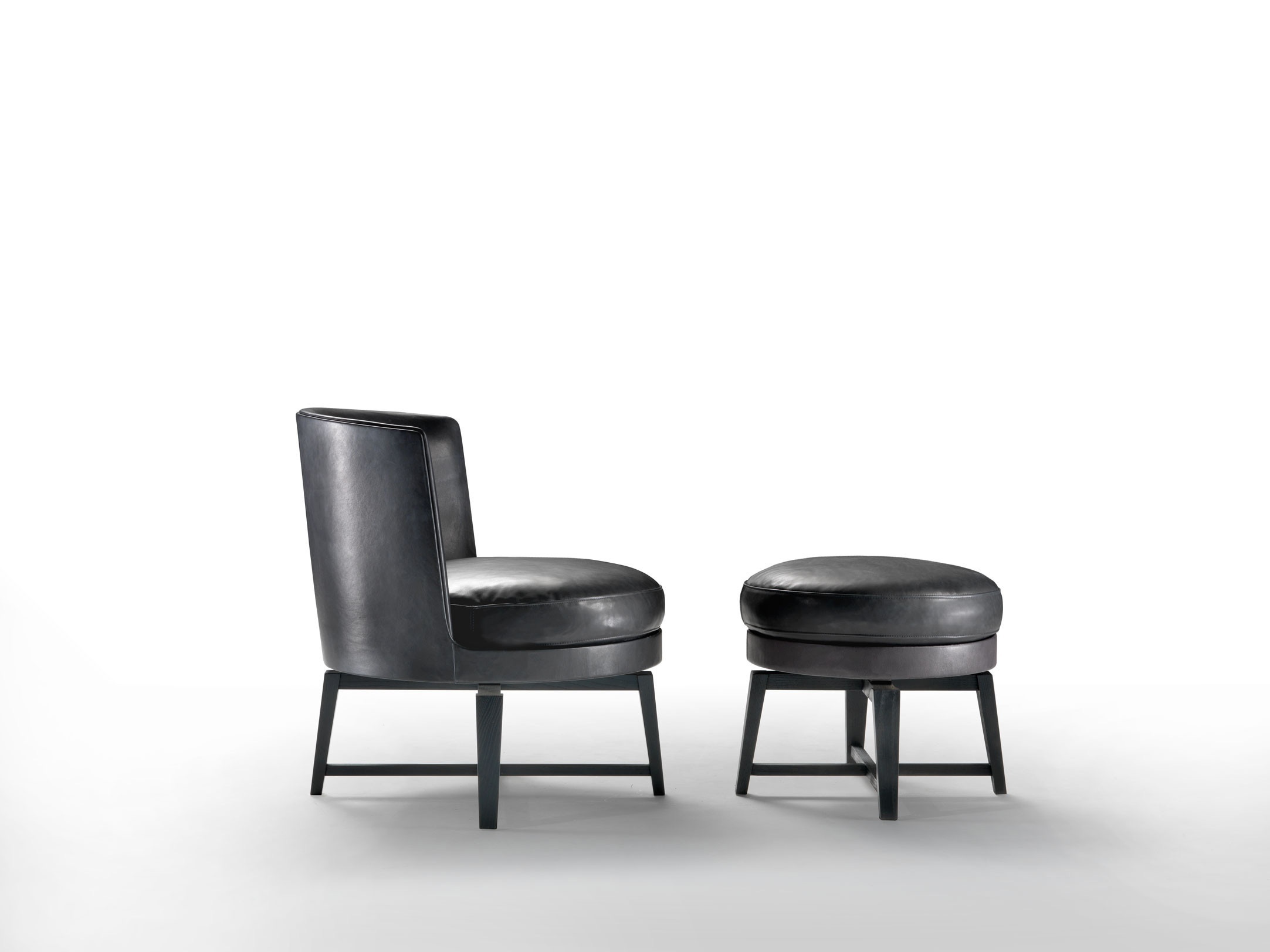 The Feel Good stool from the Italian manufacturer Flexform. Model round shape on a frame of metal or wood. Seat made of polyurethane foam and Dacron, upholstered with leather or textile. Padding - removable, colors to choose from a range of companies.