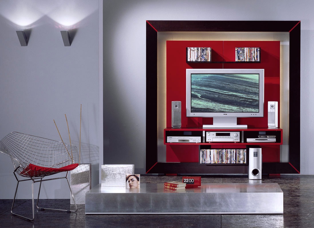 Furniture for home theater Home Cinema Frame The Italian manufacturer Vismara. Presents panel option designed to be mounted on your home theater. The color combination of red with brown tones. Panel with built-in illumination. Will perfectly complement a contemporary living room.