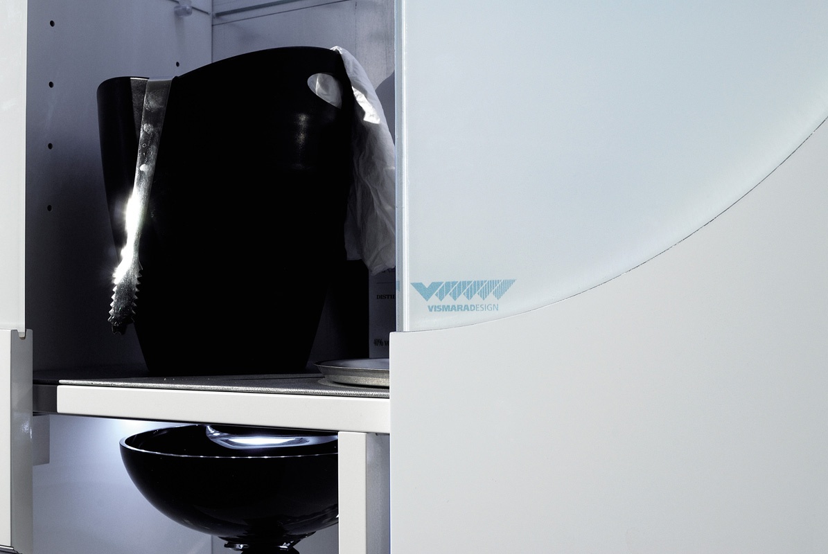 Wall bar The Container Bar Italian Frame manufacturer Vismara. Bar with sliding doors and lighting. Color scheme in white. Perfectly complement modern interior room or bar.