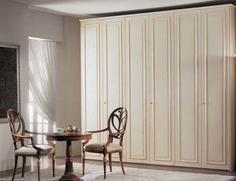 Paid wardrobe from the Italian manufacturer Ezio Bellotti. The material is solid wood. The model is carved from wood. The surface is covered with varnish. Individual parts are decorated with gold leaf. Model for bedroom in classical style. Colours in stock.