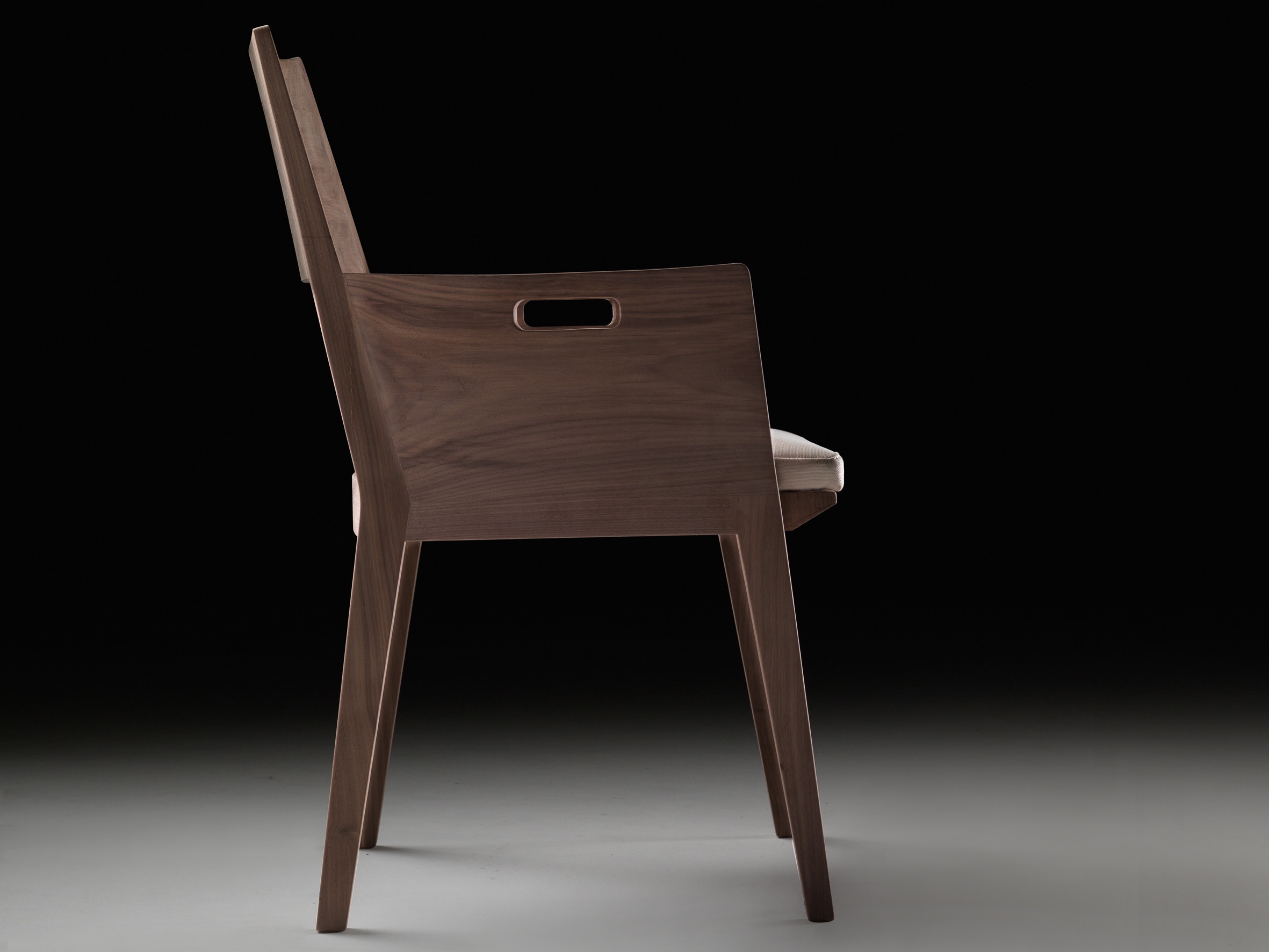 The Betty chair from the Italian manufacturer Flexform. Model on a frame of solid wood of various species, according to the catalogue company. The backrest and armrests made of wood. Seat upholstered in leather or fabric and filled with polyurethane foam. Colors from the company portfolio.