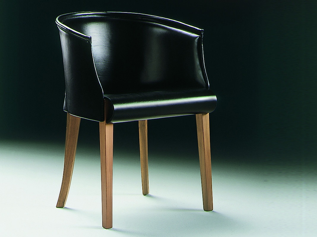 A chair Body from the Italian manufacturer Flexform. Model on a frame made of polycarbonate. Chair legs made of solid wood. Seat and back are covered with skin. Colors are chosen from the range of the manufacturer.