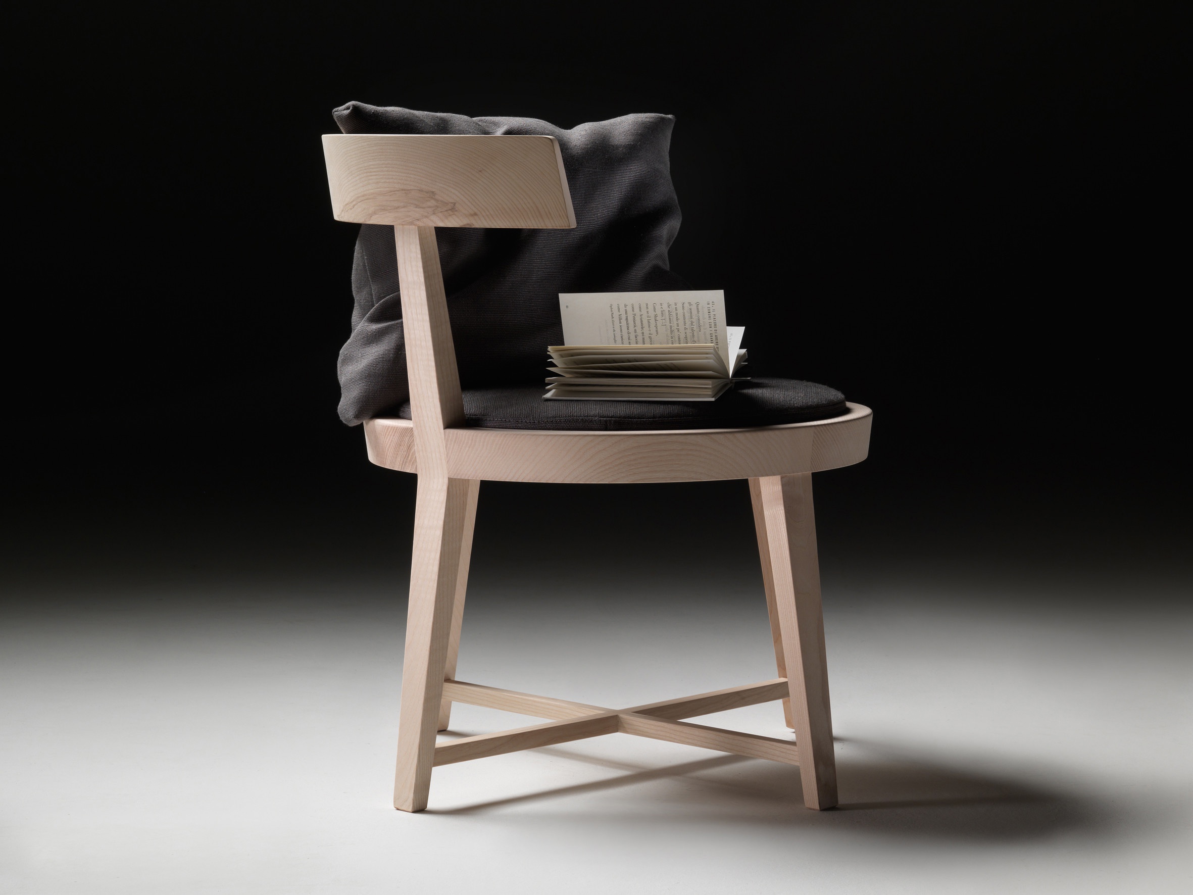 Gelsomina chair from the Italian manufacturer Flexform. Model on a frame of solid wood. The back of the semicircular shape of the same wood. The seat frame of wood and polyurethane foam. Upholstery removable fabric or leather covers. Additionally, you can order a cushion for the back of goose down.