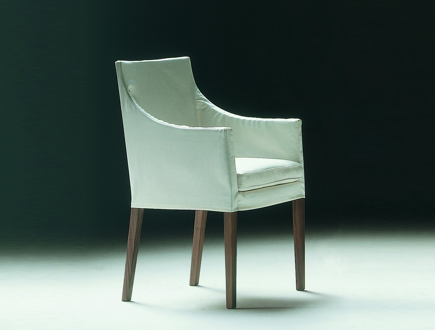 Chair with armrests Pat from the Italian manufacturer Flexform. The frame is made of metal coated with polyurethane, legs made of solid wood. The seat upholstery - polyurethane foam and Dacron. The upholstery is available in quality removable covers made of leather or textile, color catalog of the company.