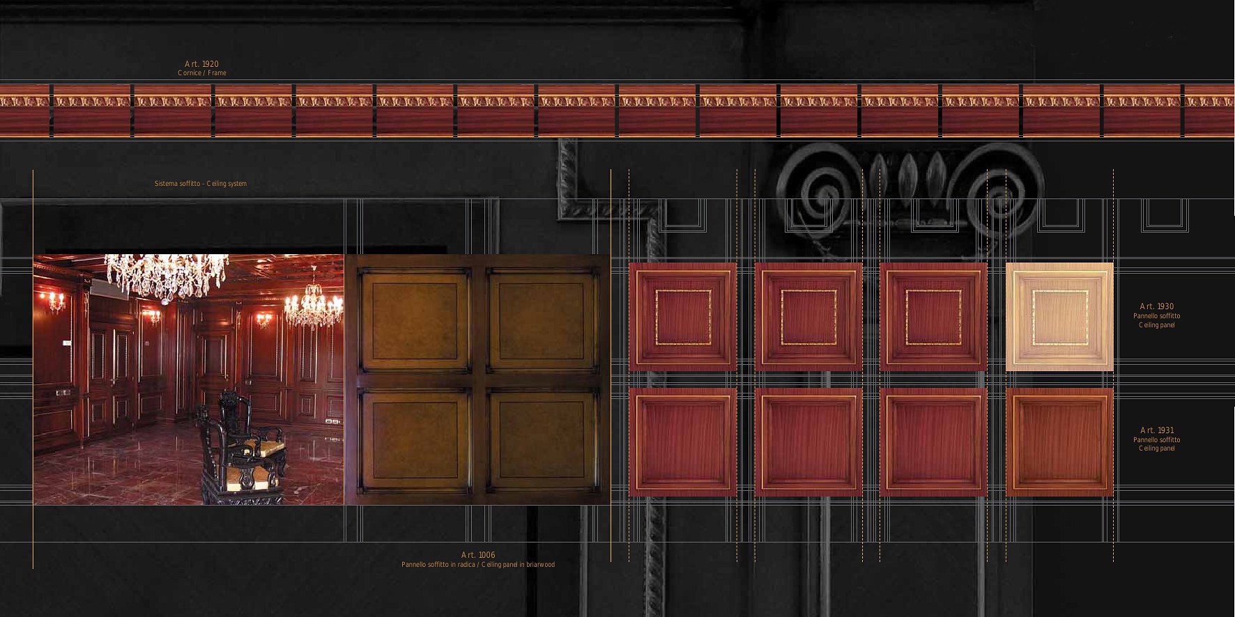 Ceiling panels made of natural wood from Italian manufacturer Ezio Bellotti. The use of decorative ceiling panels will create a refined and respectable interior. A wide range of modules of different sizes allows you to solve any design problem. Colours in stock.