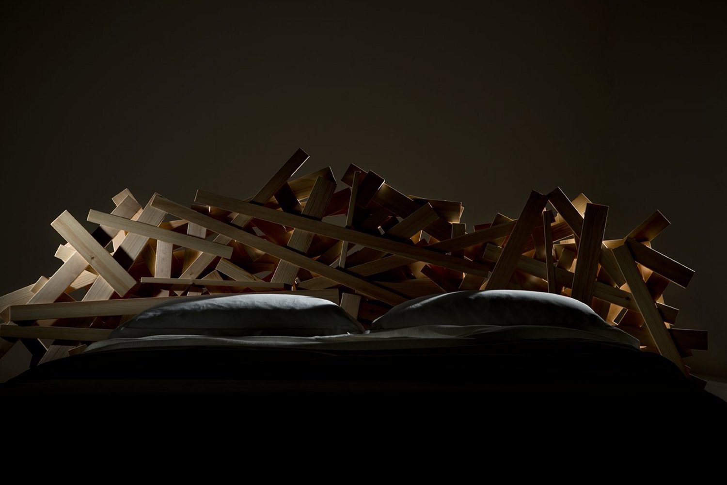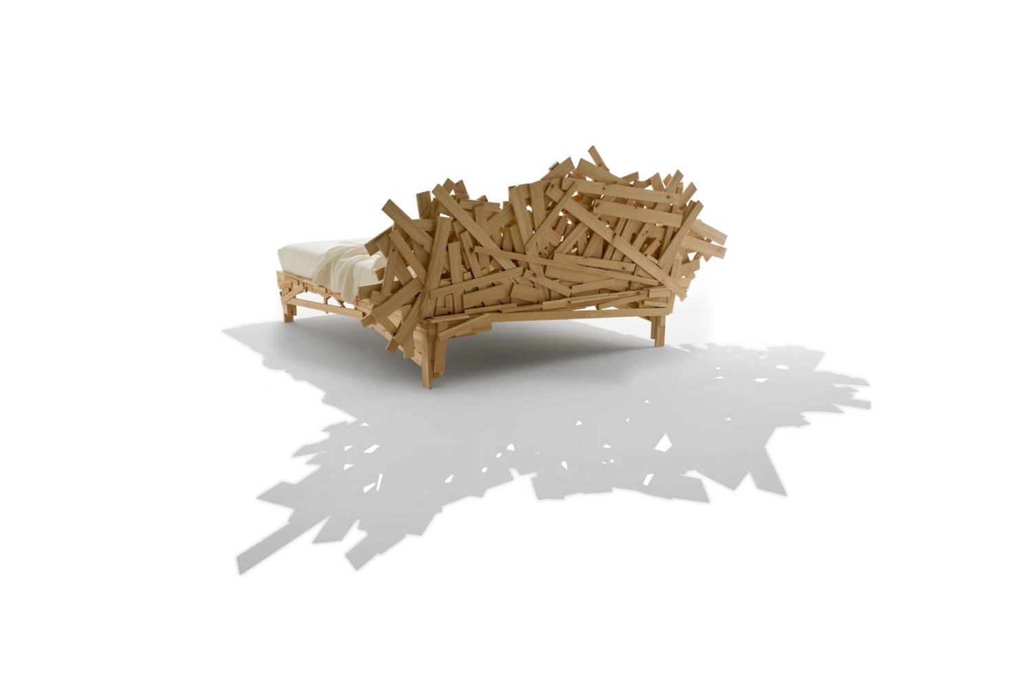 Double bed in wooden frame bed Favela from the Italian manufacturer Edra. The model designer. Like a Brazilian slum shacks, knocked together by hand, assembled from pieces of Brazilian pine. Two similar products created in this way, you will not find. Famous Brazilian favelas inspired the designer to create this bed.