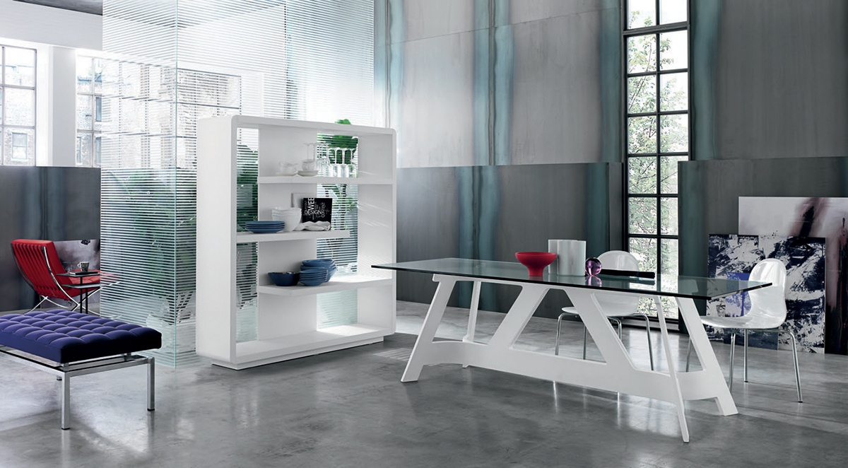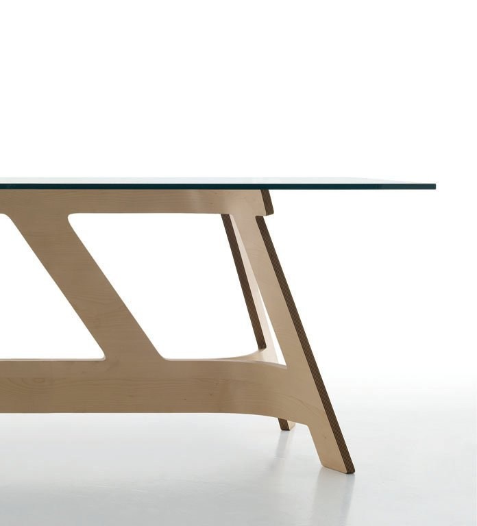 Kanji dining table from Italian manufacturer Alivar. The base is MDF of plywood of maple, Matt finishing varnish. Countertop glass thickness 15mm. the Design Nicol