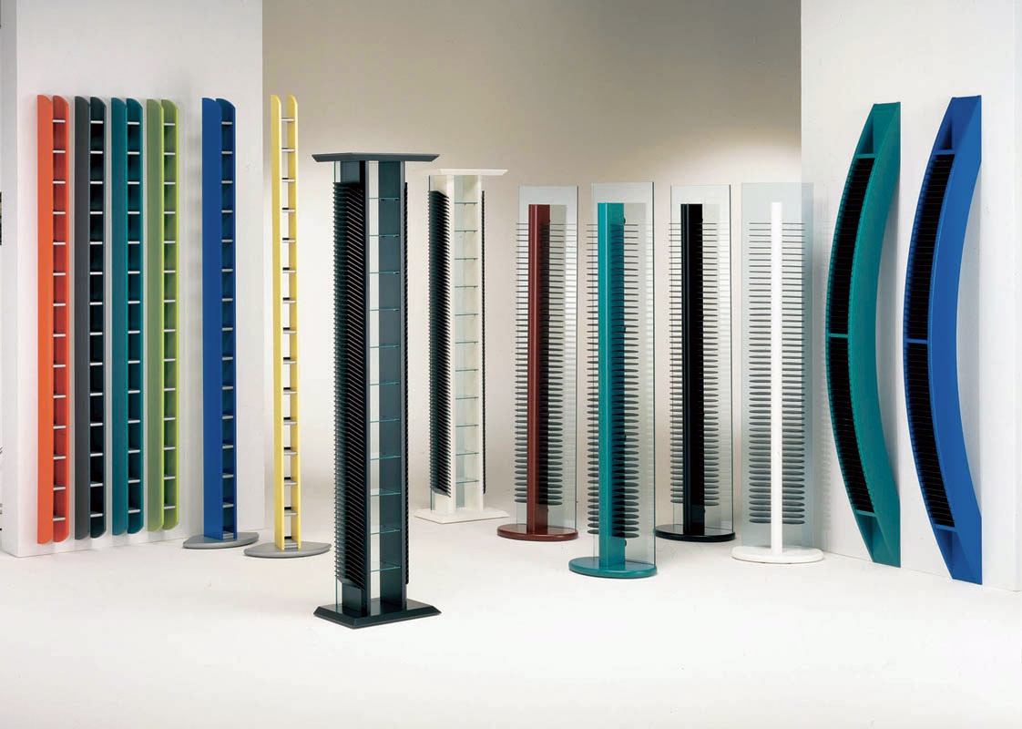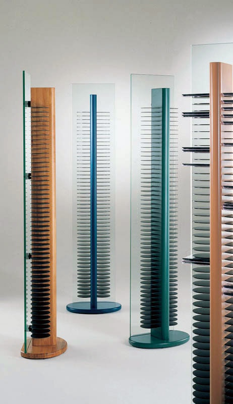 Totem-hour Italian manufacturer Vismara. The presented model outdoor rack round shape. Design solution for storage of BD discs. Color combined black and natural wood.