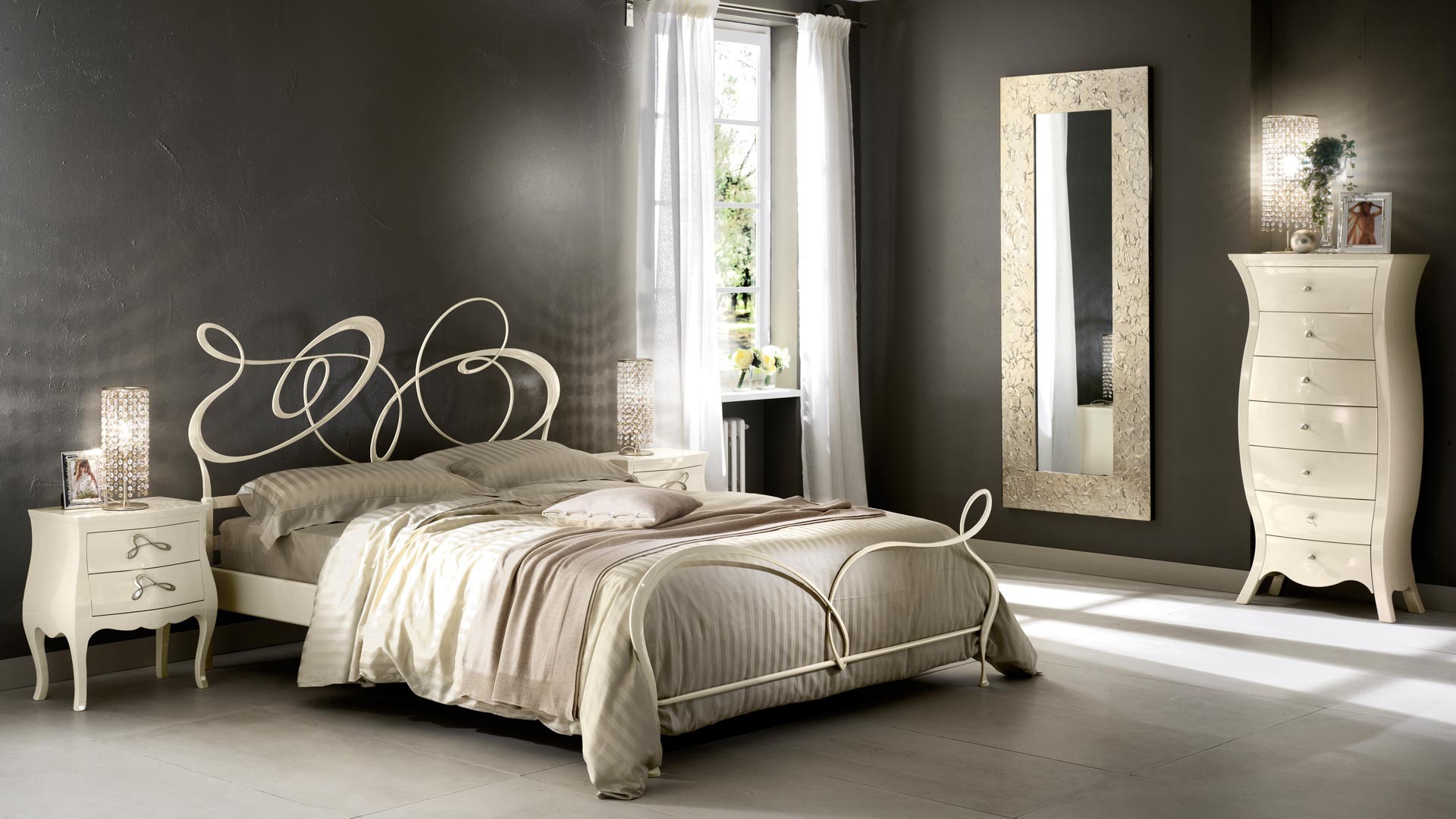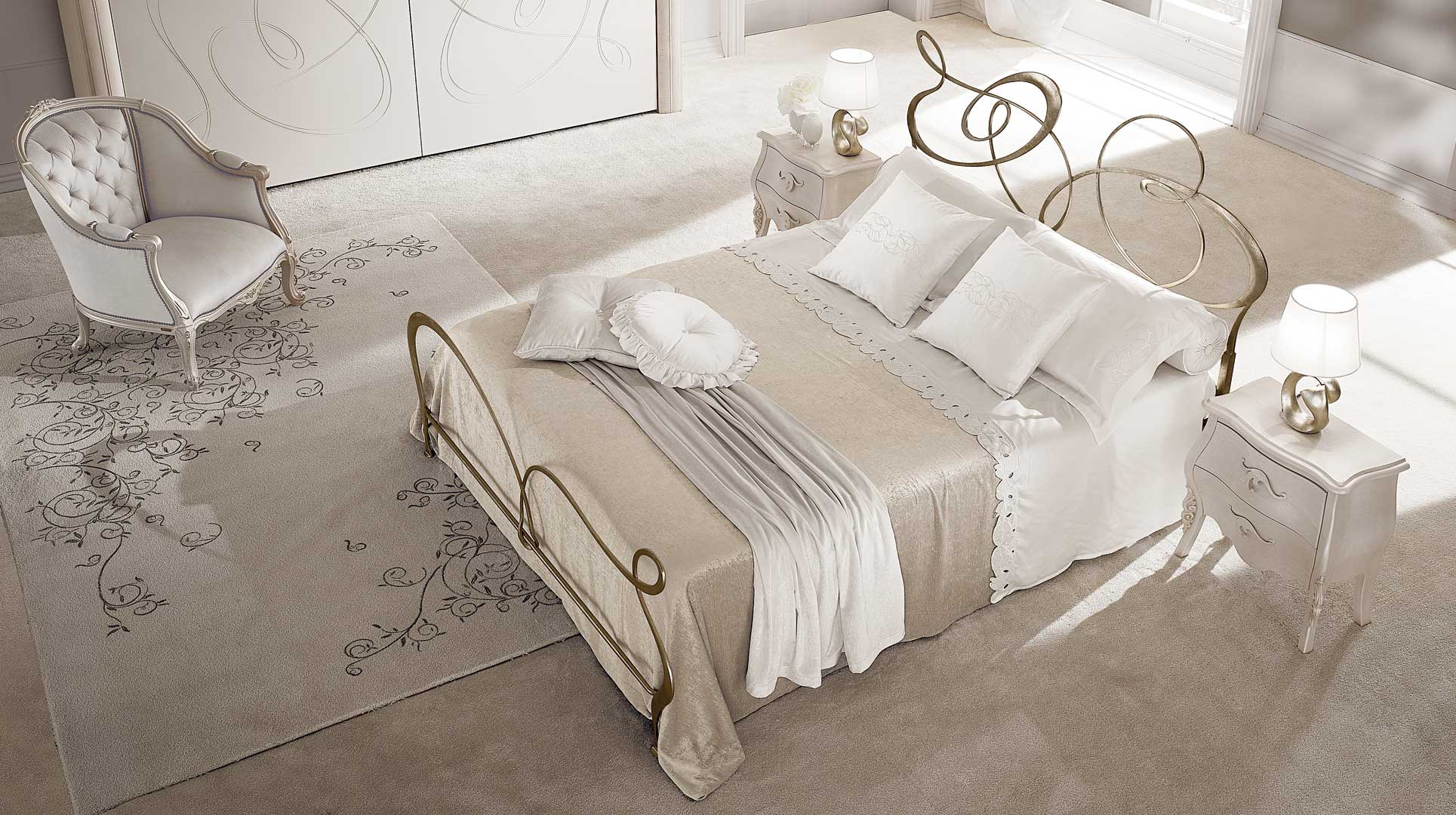 Double metal bed Ghirigori from the Italian manufacturer Cantori. The frame is made from metal with artistic forging. Tapered and forged elements the head. Eight layers of finishing coating and patina. Colours in stock.