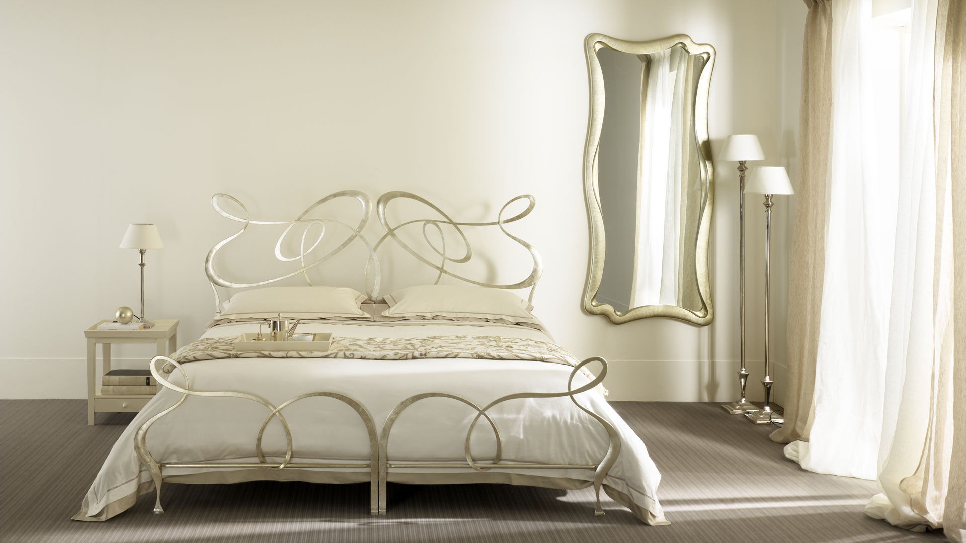 Metal single bed Ghirigori Twins Beds from the Italian manufacturer Cantori. The frame is hand made of metal with artistic forging. Tapered and forged elements the head. Eight layers of finishing coating and patina. Colours in stock.