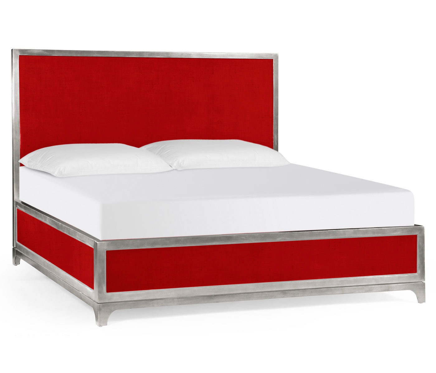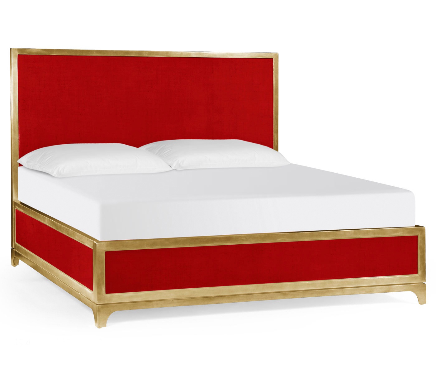 The bed is UK King/American Queen from UK manufacturer Jonathan Charles. The manufacturer offers a double UK King and compact double - Queen UK. Bed frame made of solid wood in varnished finish. Finish color - red. Model with high headboard available in gold or silver frame.