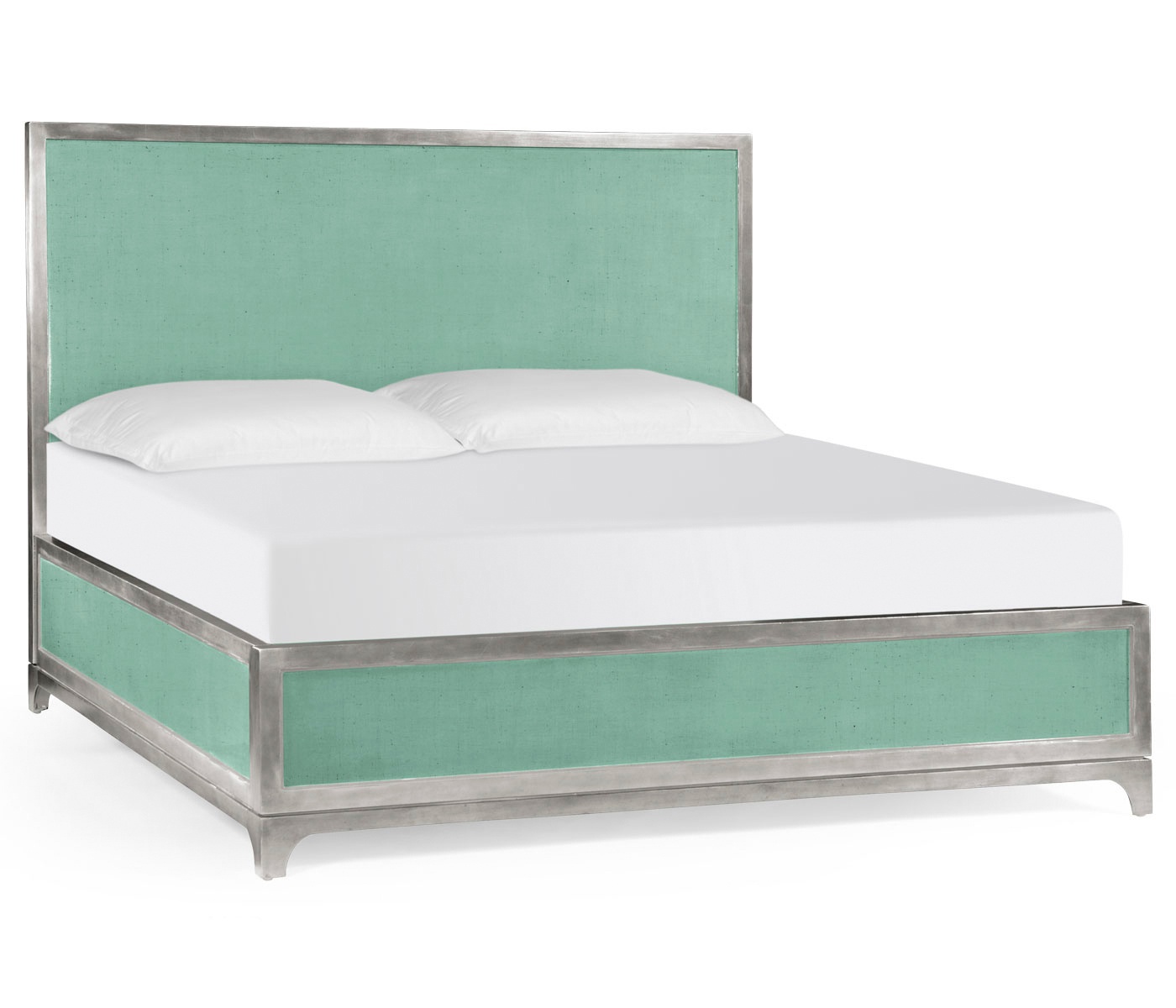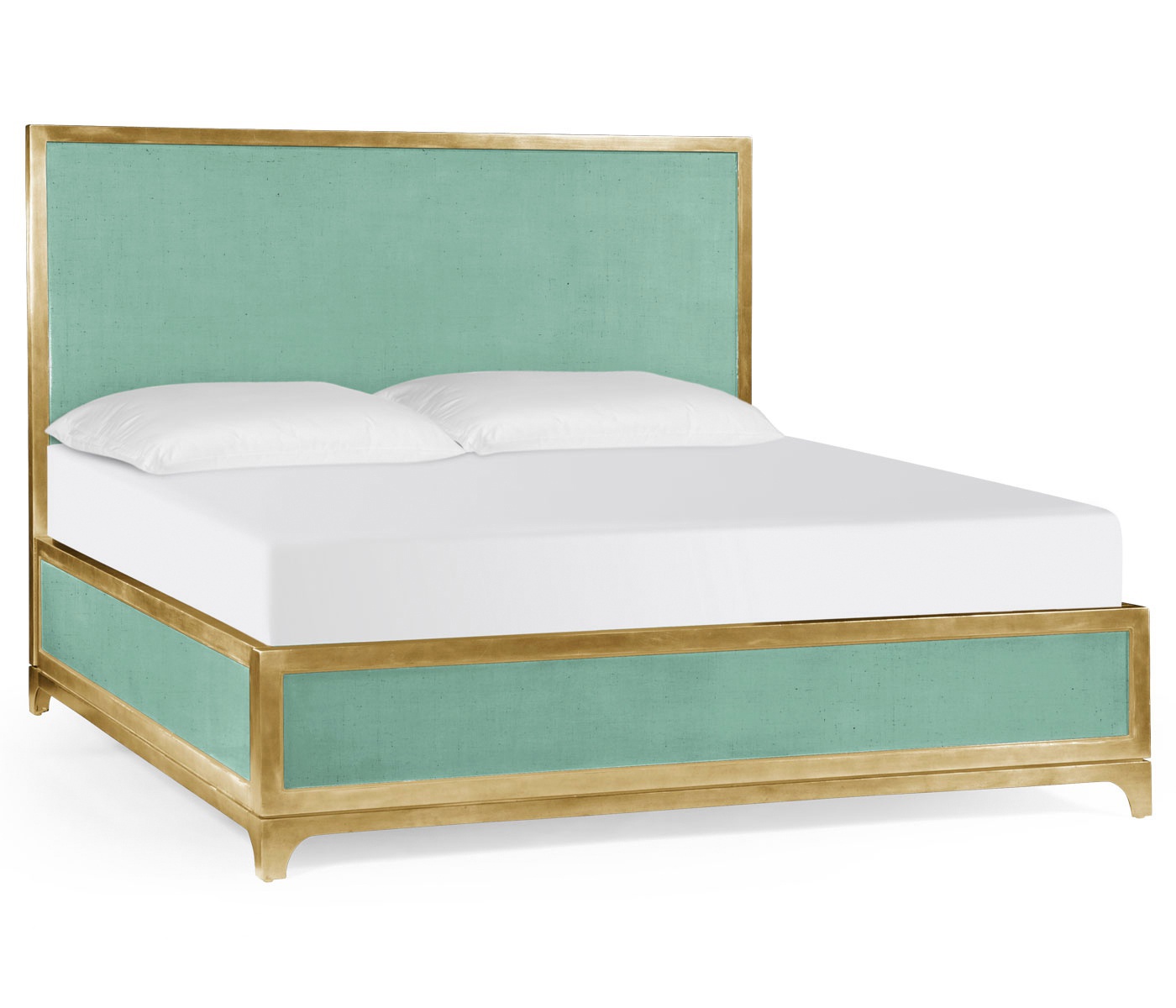 The bed is UK King/American Queen from UK manufacturer Jonathan Charles. The model is presented in two versions UK King - double bed and a double compact - UK Queen. The frame is made from solid wood in varnished finish. Finish color - turquoise. Model with high headboard is available in gold or silver frame.