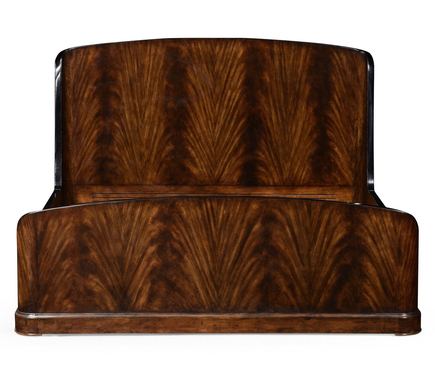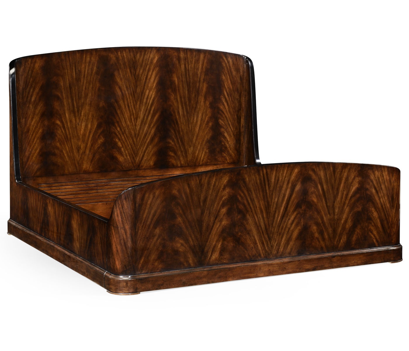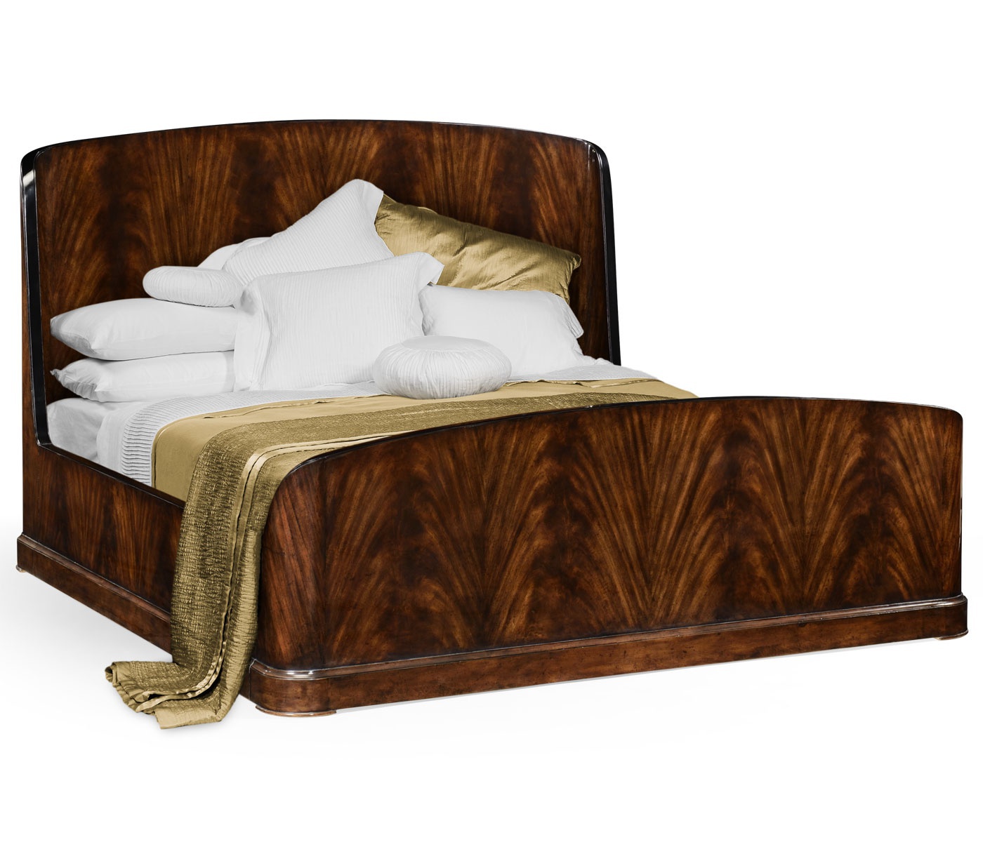 The bed is UK King/American Queen from UK manufacturer Jonathan Charles. The model is presented in two versions UK King - double bed and a double compact - UK Queen. The bed is made on a frame of solid wood veneer mahogany. Model with a high curved headboard and foot based on the age of Biedermeier and executed in the Baroque style.