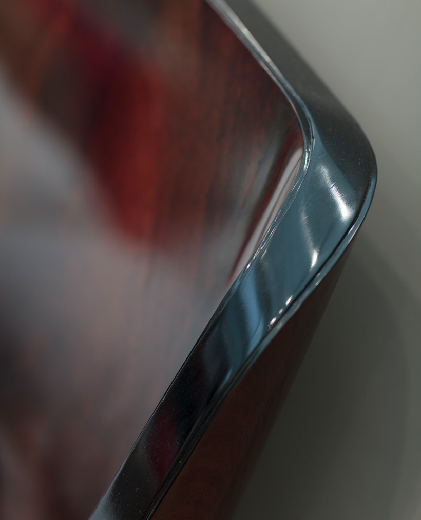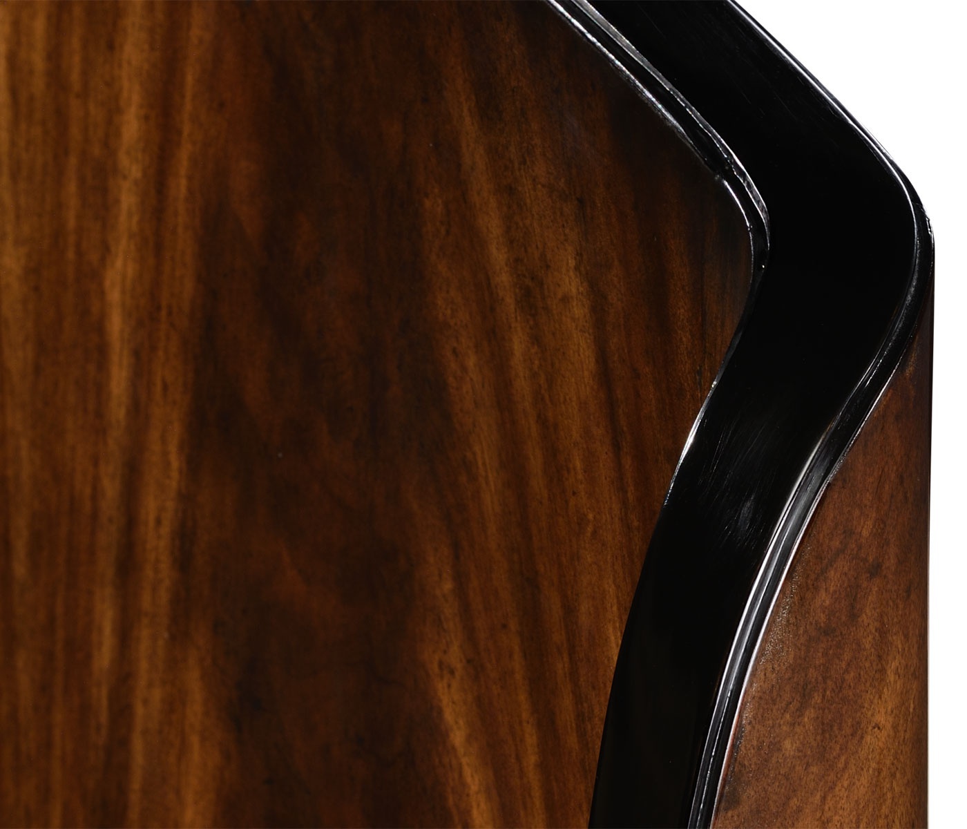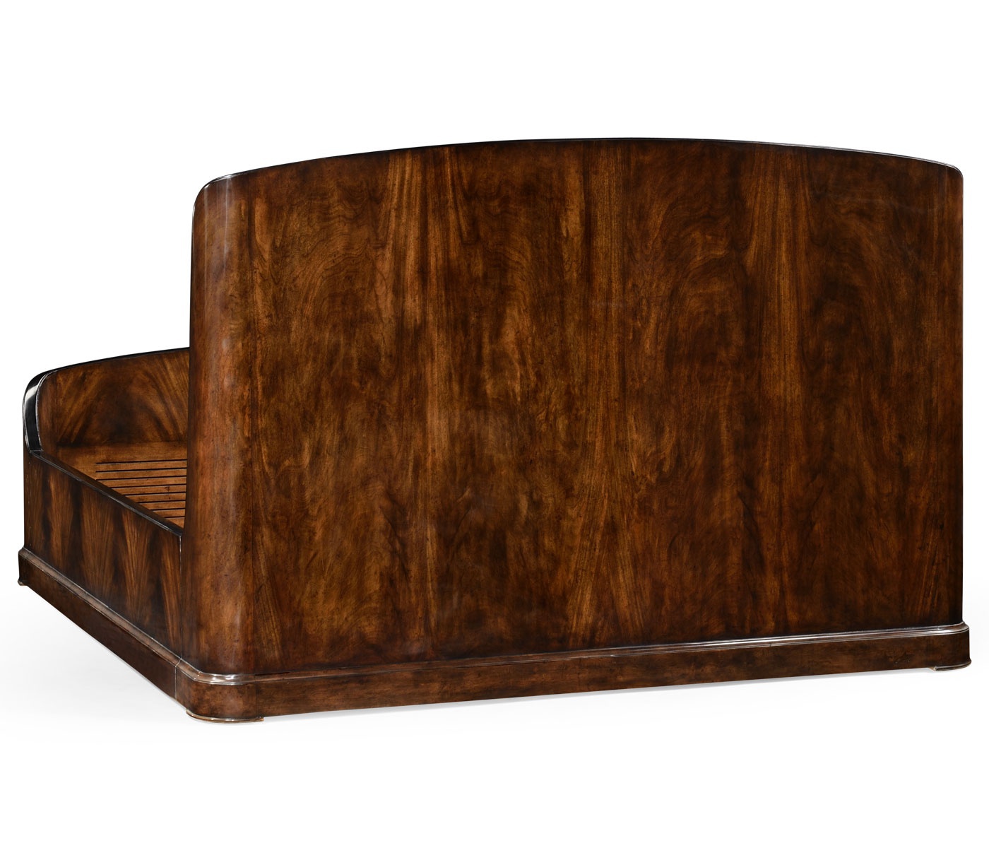 The bed is UK King/American Queen from UK manufacturer Jonathan Charles. The model is presented in two versions UK King - double bed and a double compact - UK Queen. The bed is made on a frame of solid wood veneer mahogany. Model with a high curved headboard and foot based on the age of Biedermeier and executed in the Baroque style.