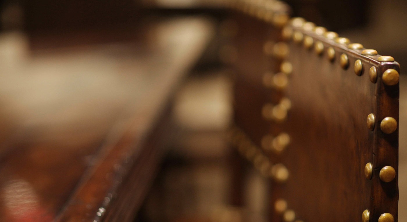 Chair without armrests with black leather padding Tudor, Jonathan Charles