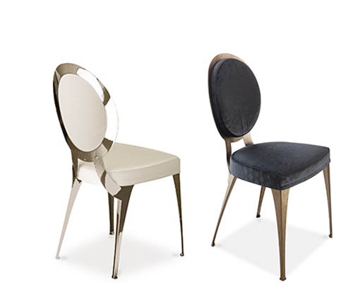 Chair with metal frame padded backrest Miss from the Italian manufacturer Cantori. Model with metal frame. Surface finish silver plated or gold plated. The seat and back are padded with polyurethane foam filler. Upholstery textile from the company portfolio.Modern design beautiful decoration for a glamorous interior.