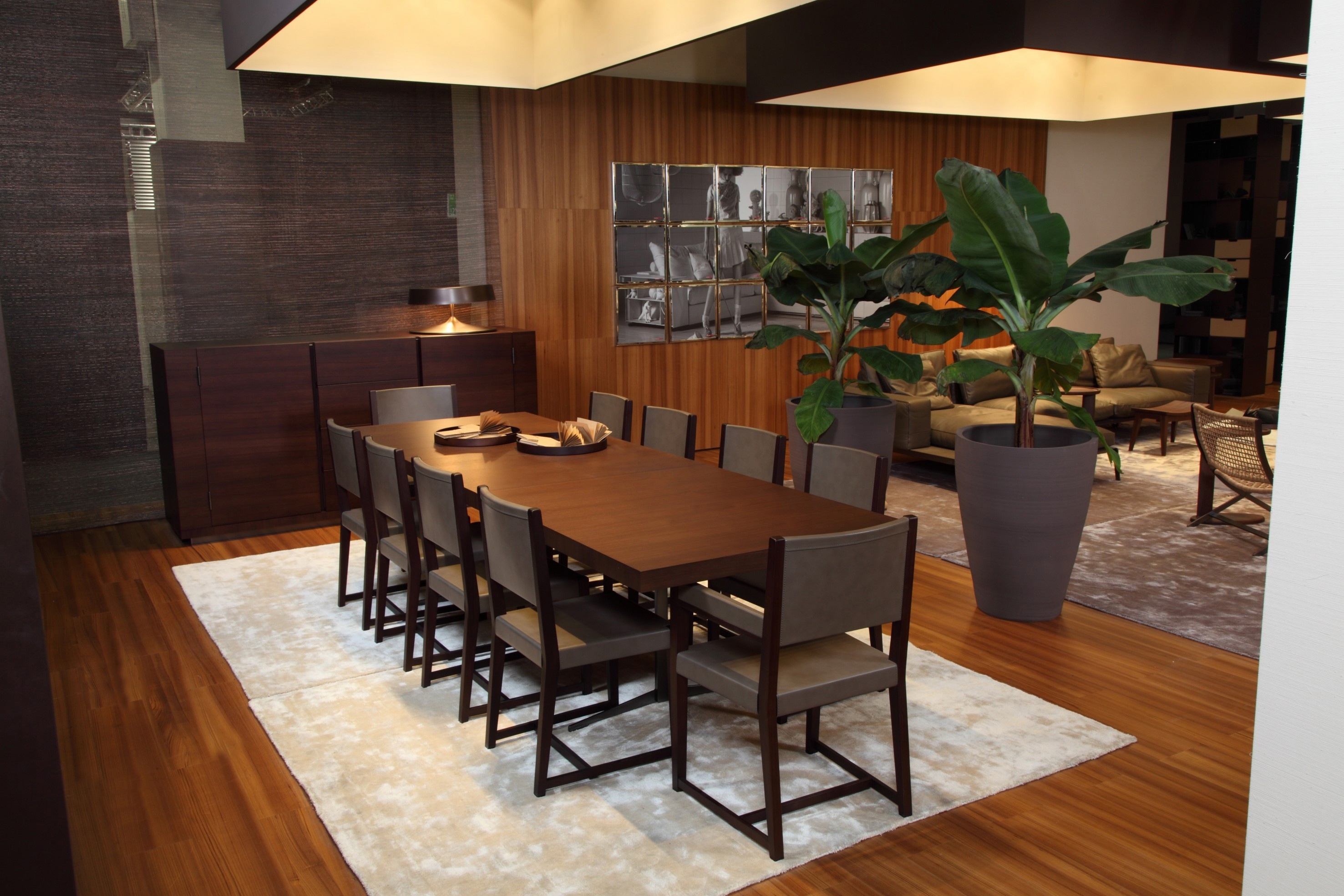 The Fly table from the Italian manufacturer Flexform. The frame is made from metal, the table top made of solid wood. Dining table in rectangular shape is designed for dining room in modern style. The manufacturer offers a sliding version.