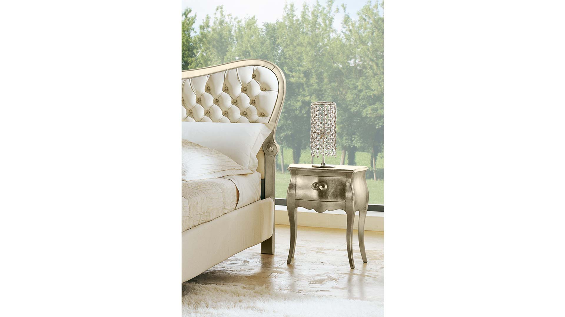 Orlando bedside table made of solid wood from Italian manufacturer Cantori. Frame carved handmade from natural wood with a drawer. The handle is made of bronze. Surface finish with patina and gilding. The model will adorn any interior.