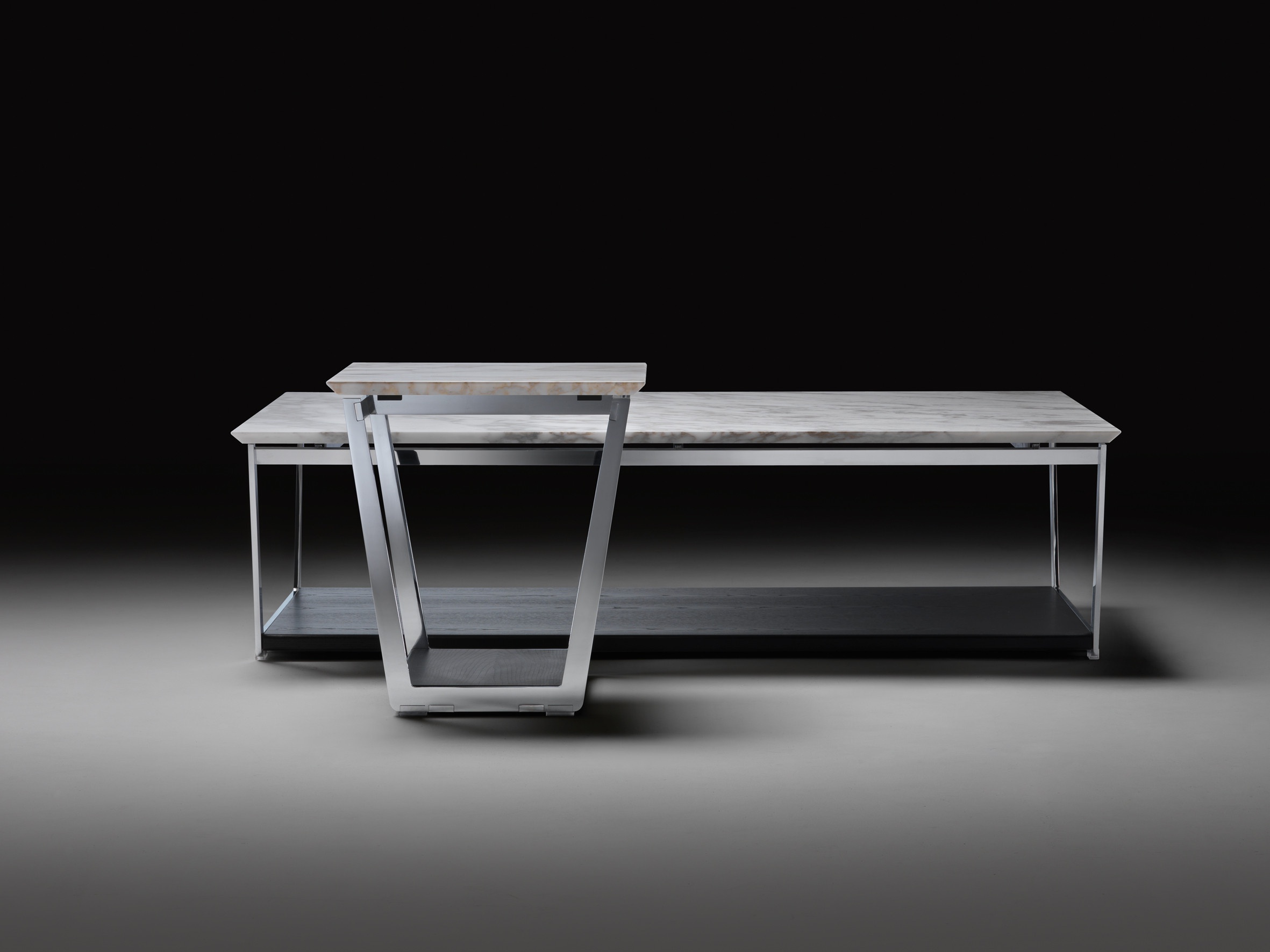 Vito table from the Italian manufacturer Flexform. The frame is made of metal, worktop made of marble, a shelf made of wood. Model square, round or rectangular shapes in a contemporary style. Product color white, natural wood color or by manufacturer's catalogue.