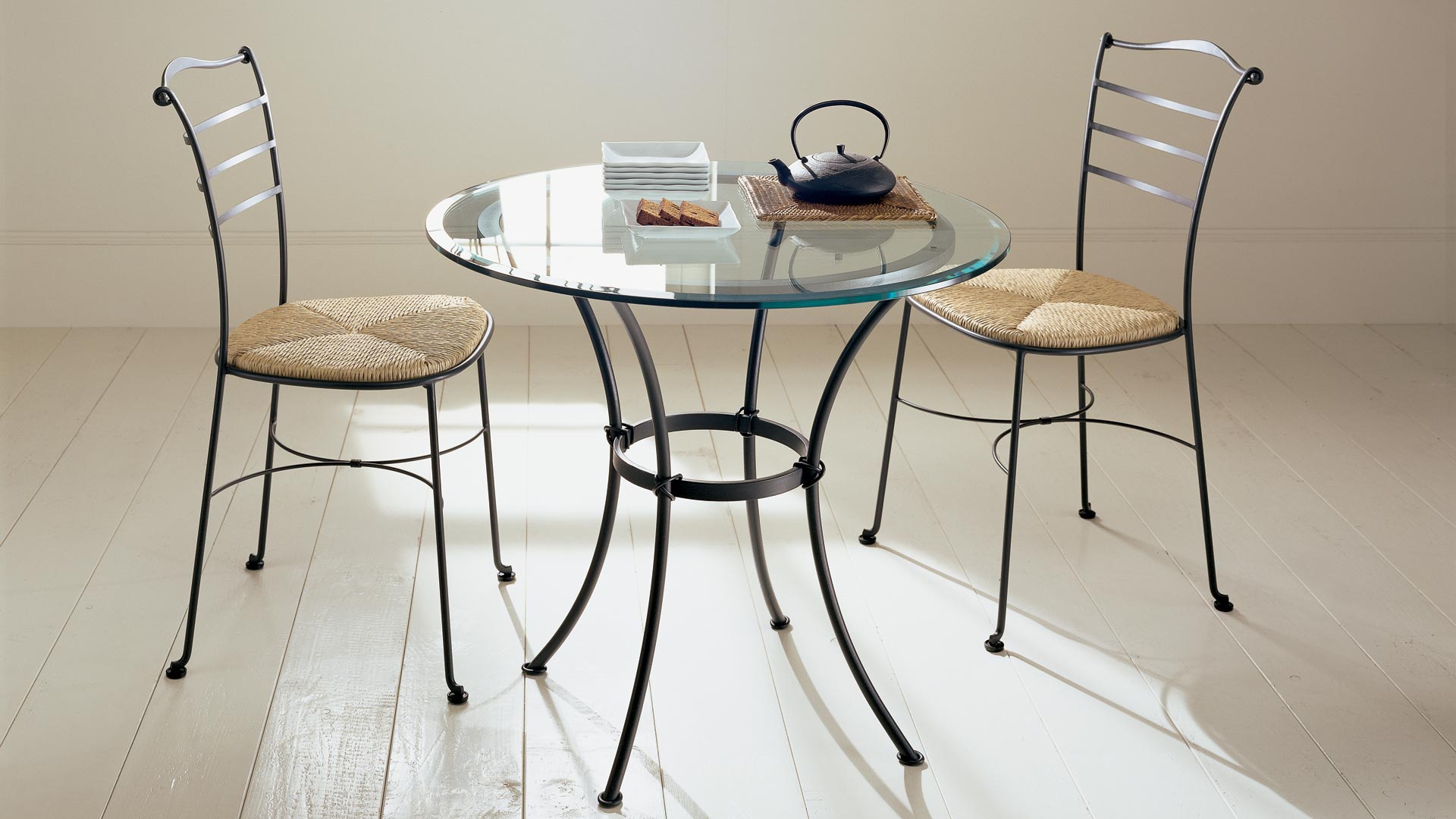 The Prado dining table from Italian manufacturer Cantori. The model is made of metal with a wrought-iron frame handmade. Worktop - tempered glass. The modern design.