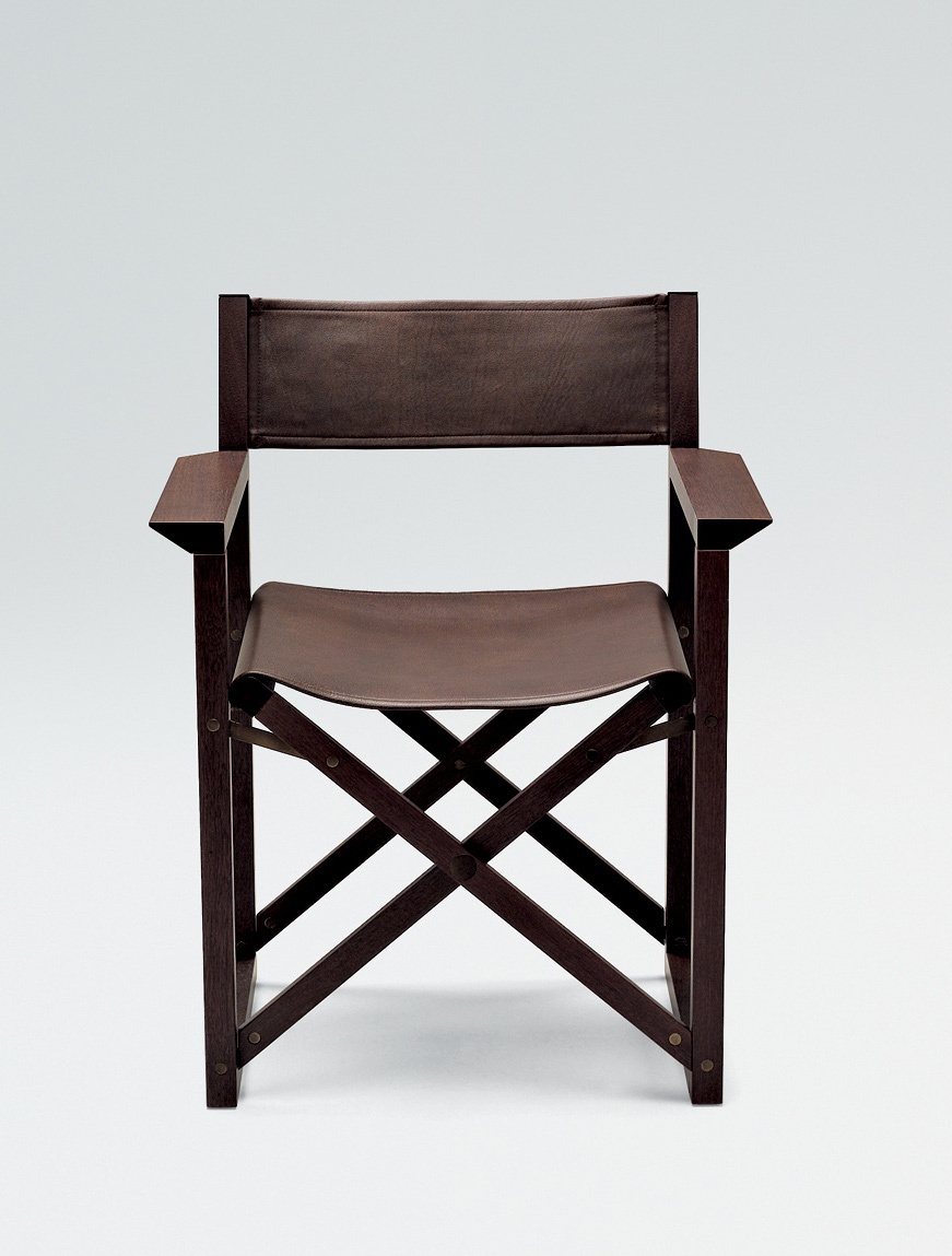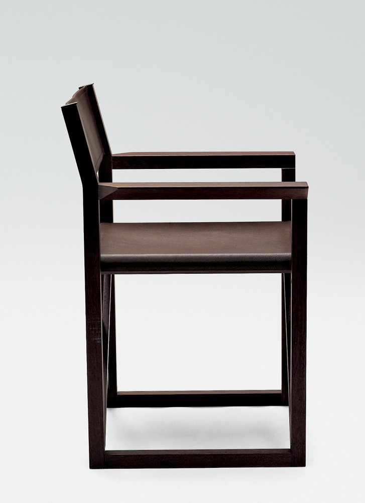 Chair with hard armrests Oscar Italian manufacturer Armani Casa. Model on wooden frame. Back and seat covered from genuine leather. Color scheme in shades of brown. The modern style of execution.
