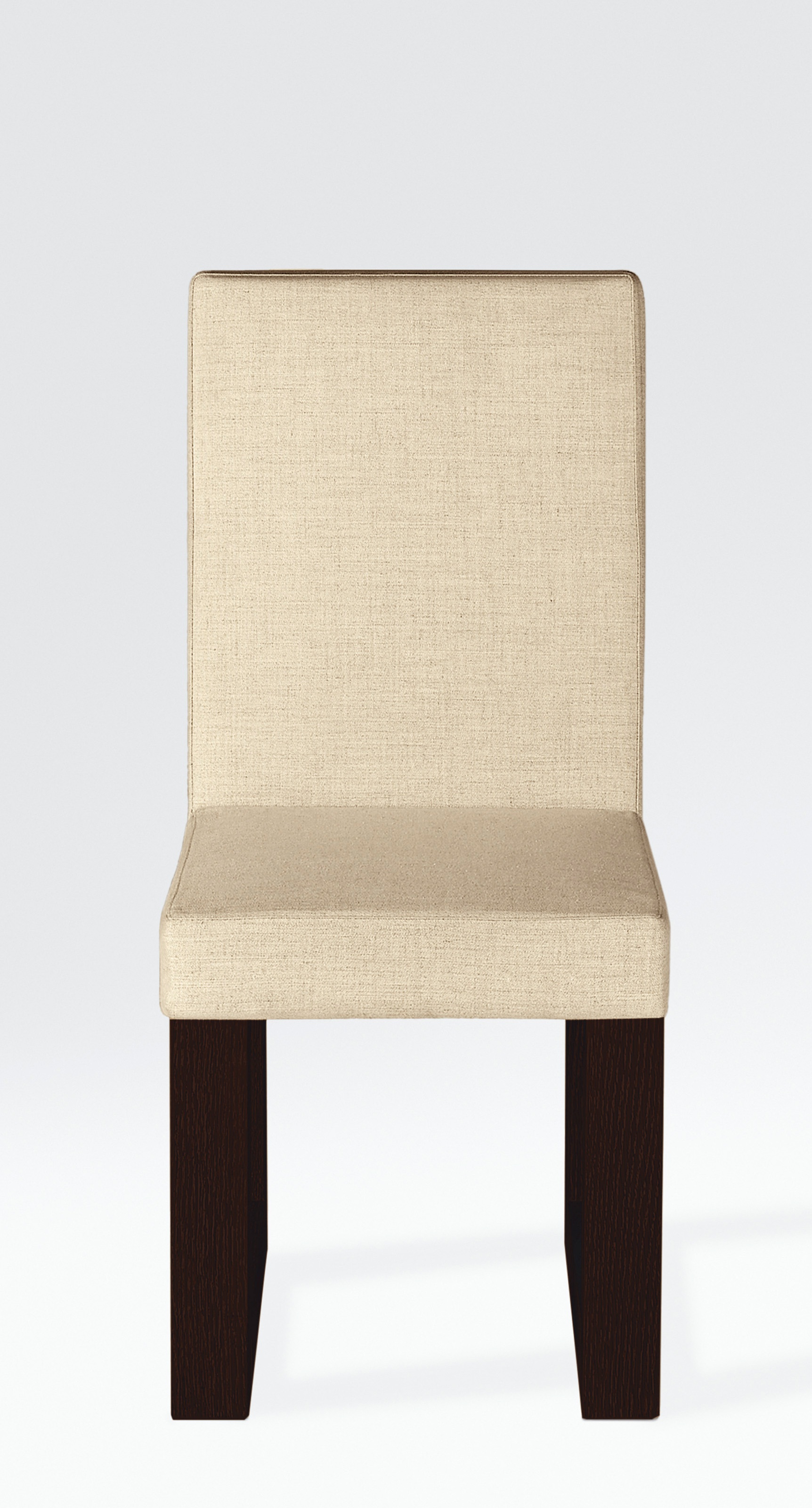 Chair with high back Vegas in the textile upholstery of the Italian manufacturer Armani Casa. Seat and back in light upholstery textile. Frame made from wood in brown color. A modern solution for the interior of the dining room.